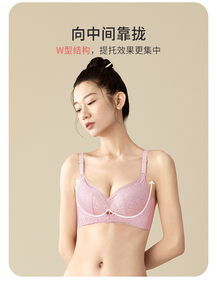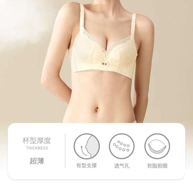 都市丽人内衣聚拢升杯超薄蕾丝三排扣树脂胶圈3/4杯常规文胸LB22E4