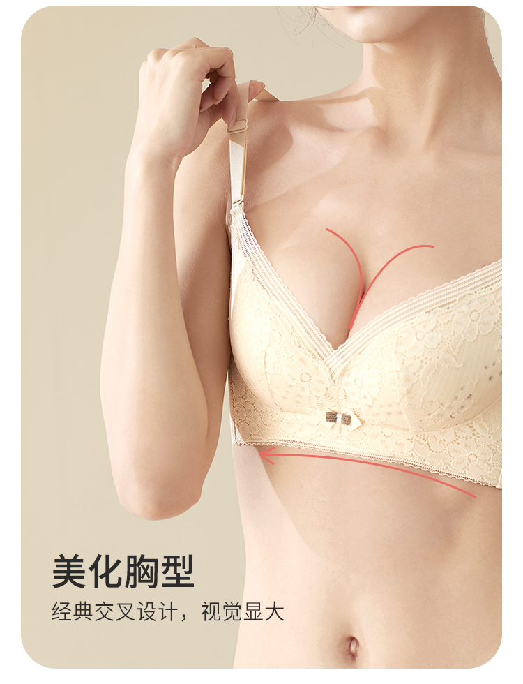 都市丽人自然舒适BC杯适穿蕾丝内衣两种厚度3/4杯常规文胸无钢圈三排扣新年本命年红品LB31M1