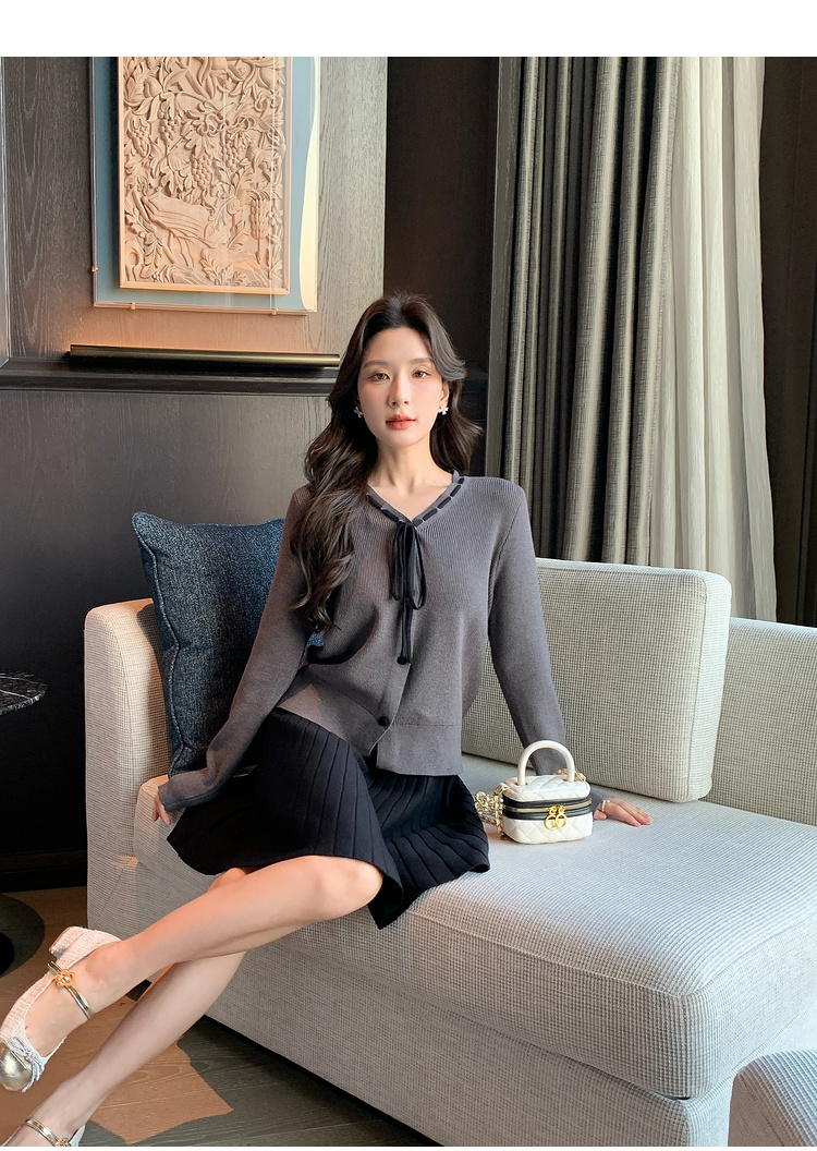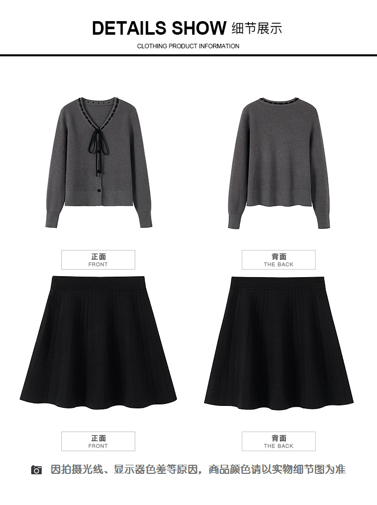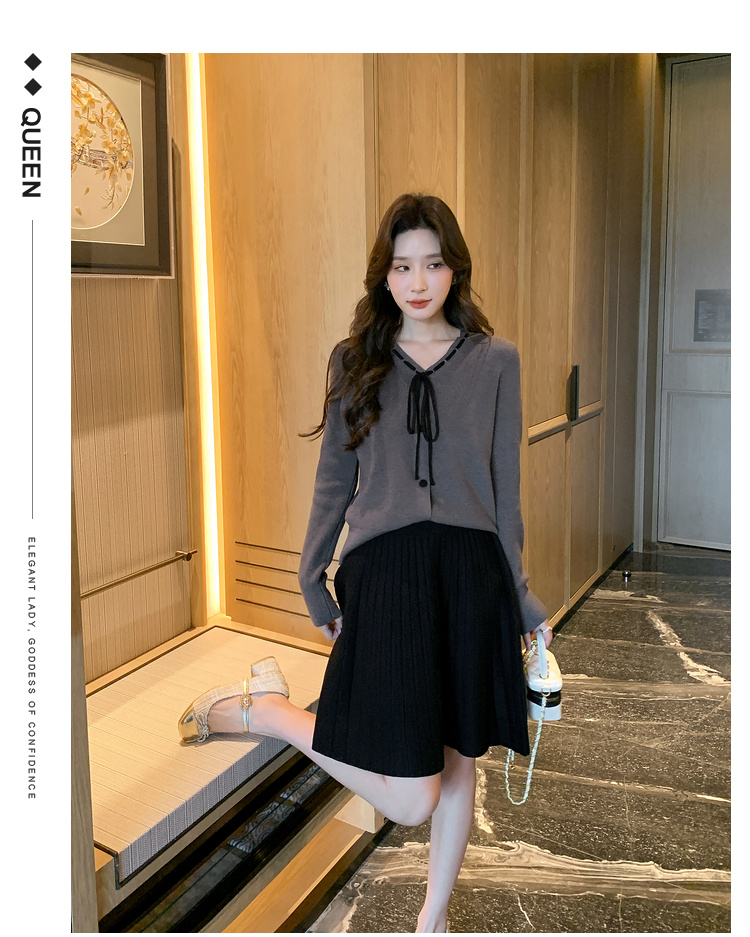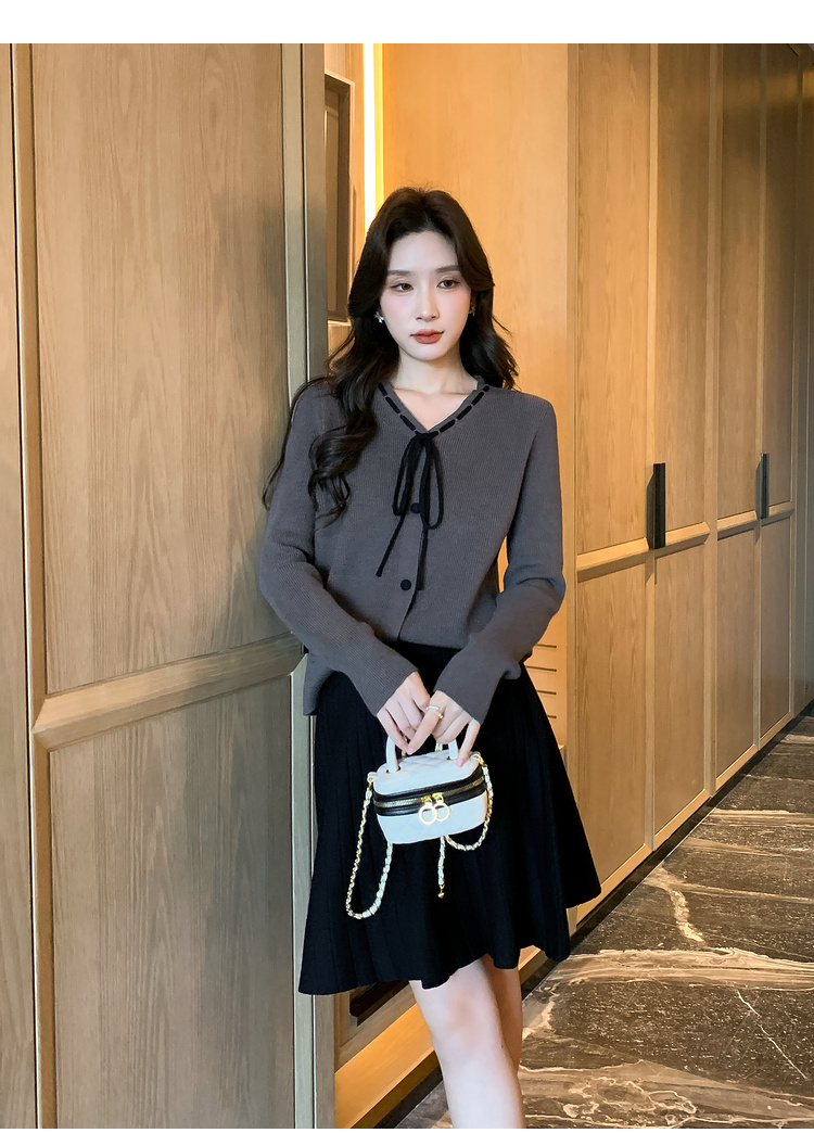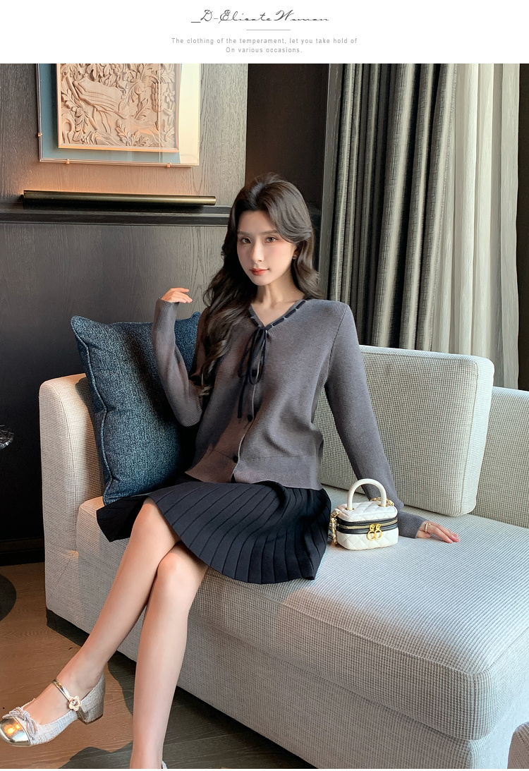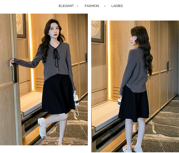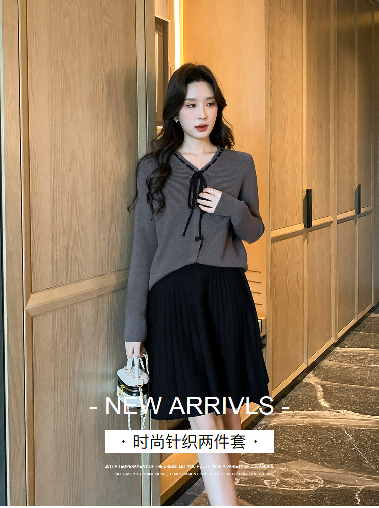 奢姿大码女装2024冬季蝴蝶结减龄V领两件套胖妹妹时尚针织套装9844953688