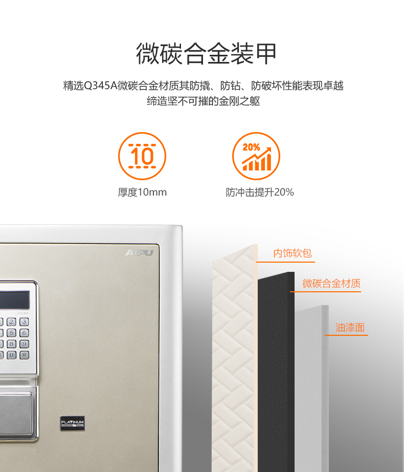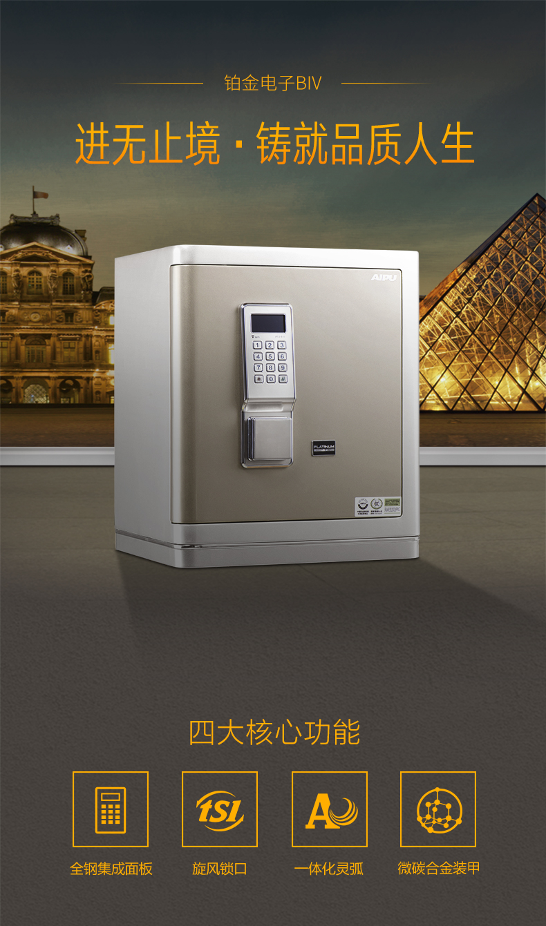 AIPU艾谱保险柜智能WiFi家用入墙办公电子密码保险箱国家3c认证铂金全钢入墙床头柜