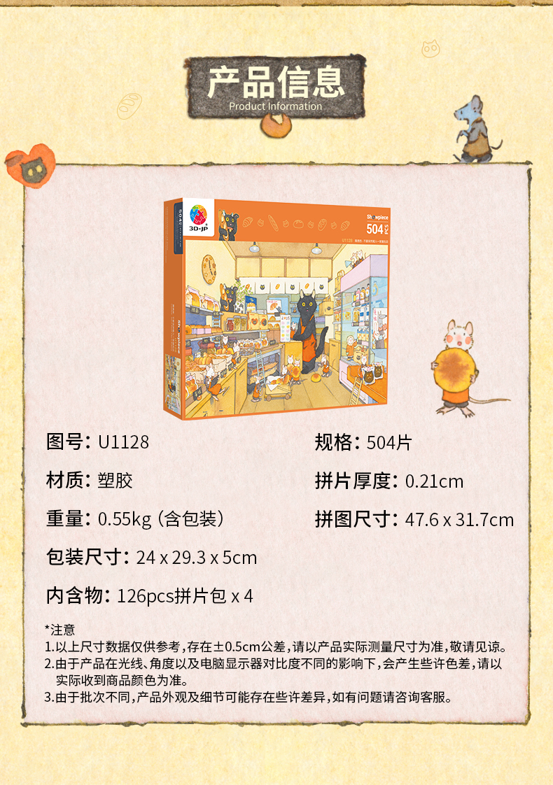 504片 平面塑料拼图 U1128 罗德西-不要突然闯入一家面包店【Showpiece L】