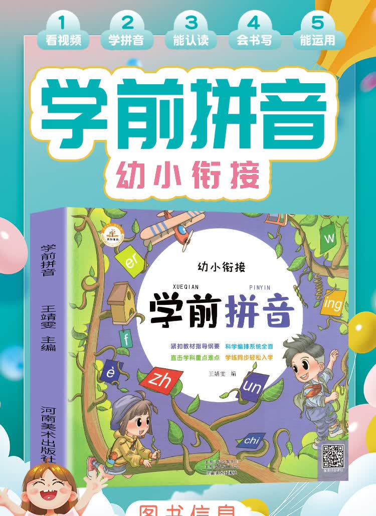 (仓发) 学前语文 学前语文教材 幼小衔接5-6-7岁幼儿园大班升一年级学前班教材幼升小学前幼儿阅读与识字书籍看图说话儿歌谜语汉字/河南美术出版社/王靖雯/9787540153885