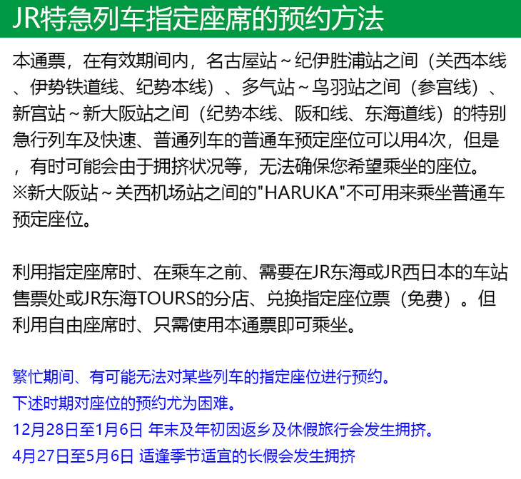 日本伊势熊野和歌山地区JR Pass 5日铁路通票顺丰包邮JRPASS