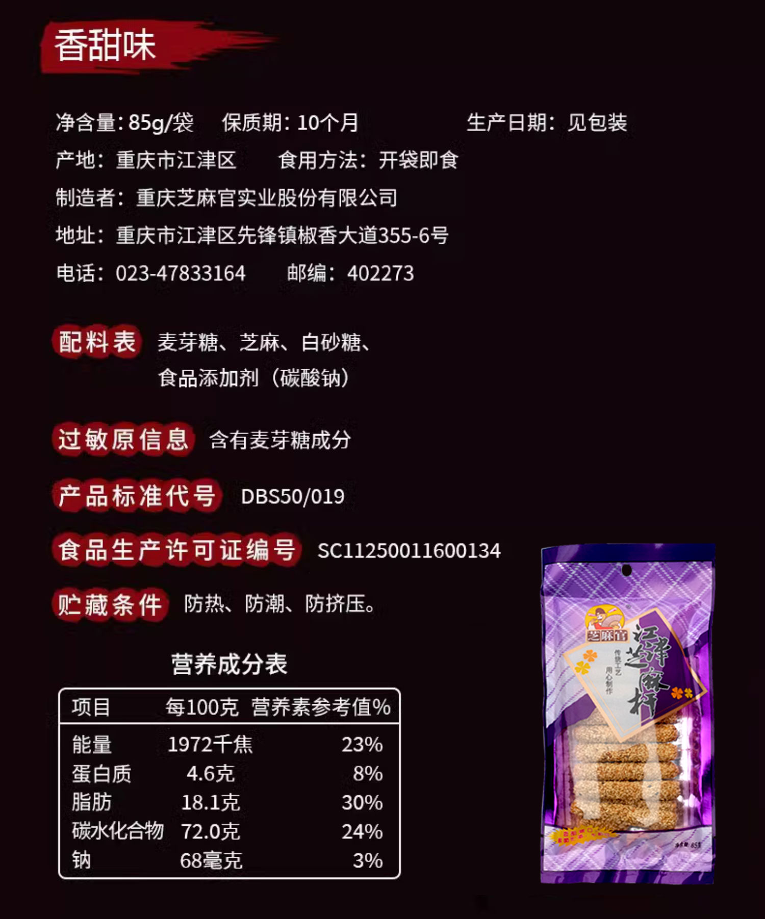 芝麻杆 重庆特产老式小吃85g袋装怀旧零食
