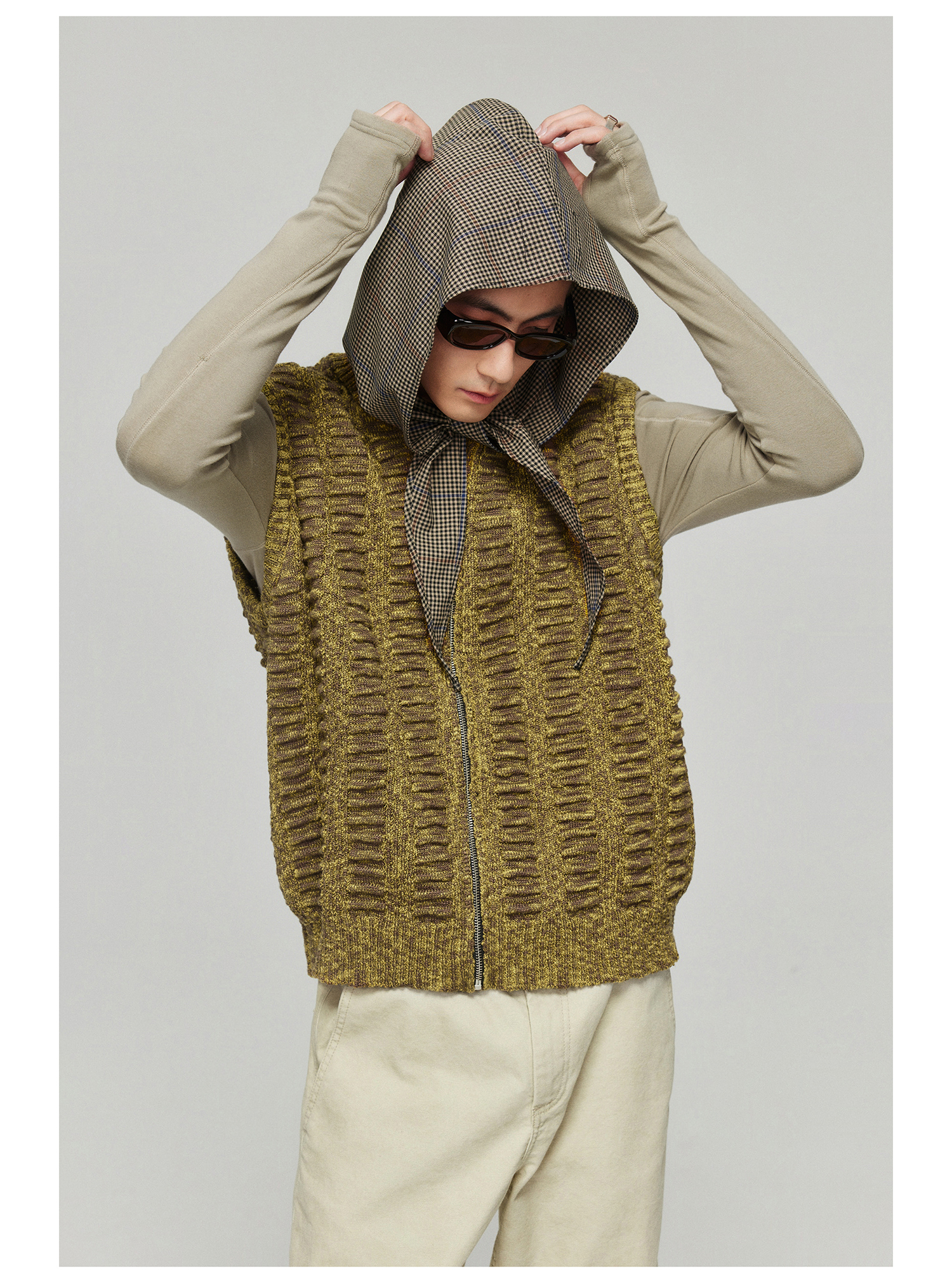 Simple Project/M23105/混色纱凸条组织拉链V领罗纹针织马甲背心