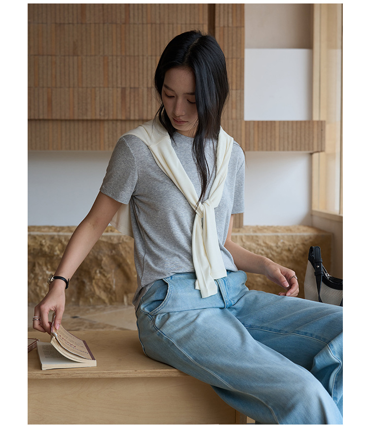 2026新款 【天丝莫代尔桑蚕丝!59元秒杀】 T 恤女 夏季圆领羊毛短袖修身显瘦百搭打底衫外穿上衣ZXFX2026