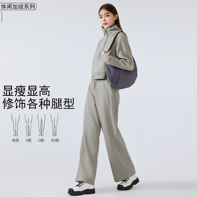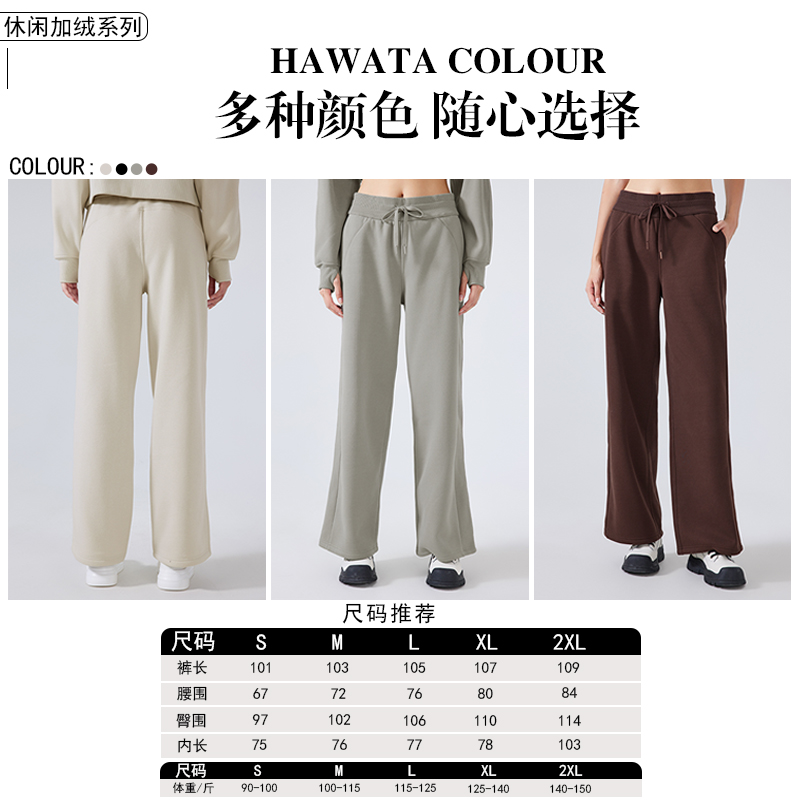 哈瓦塔(卫裤直筒)加绒宽松运动休闲长裤H341170