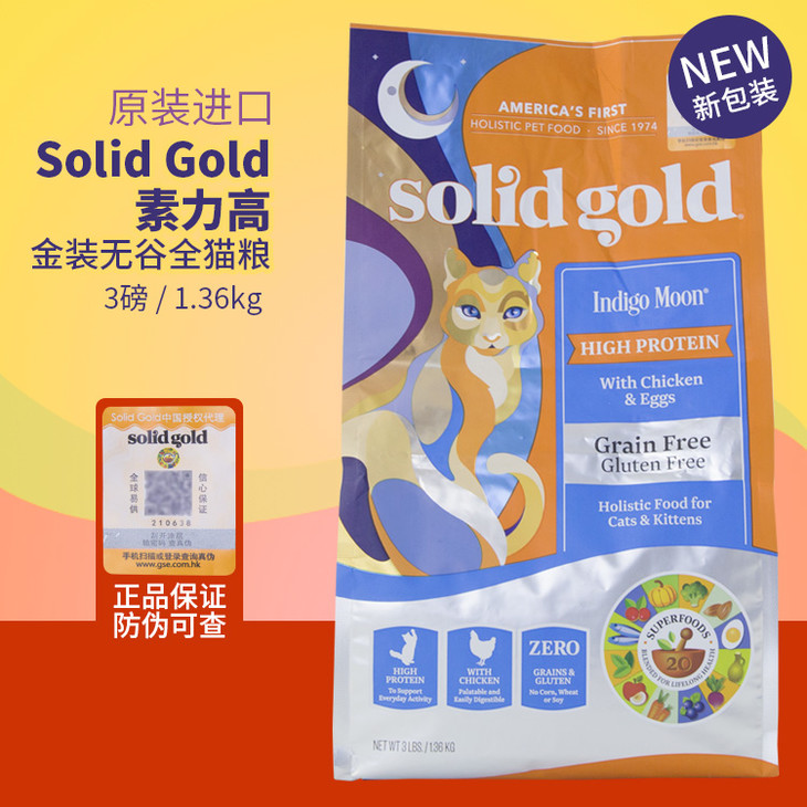 【保税仓】加拿大原装进口素力高Solid Gold 靛蓝满月 金装素力高 猫粮3磅 采 购 价