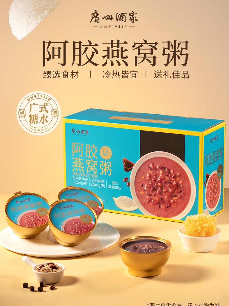 广州酒家阿胶燕窝粥糖水礼盒滋补银耳开罐即食代餐懒人下午茶