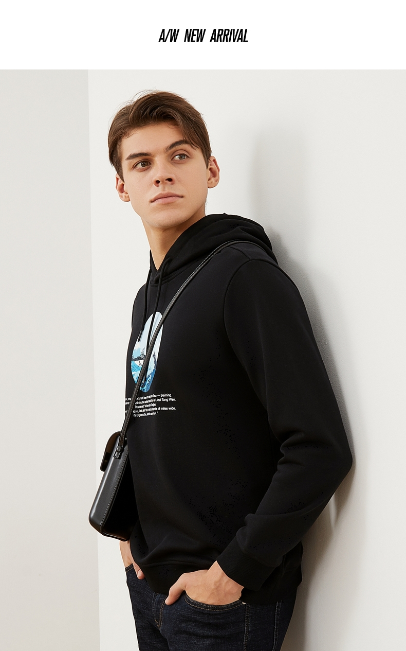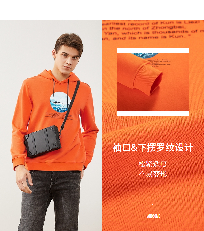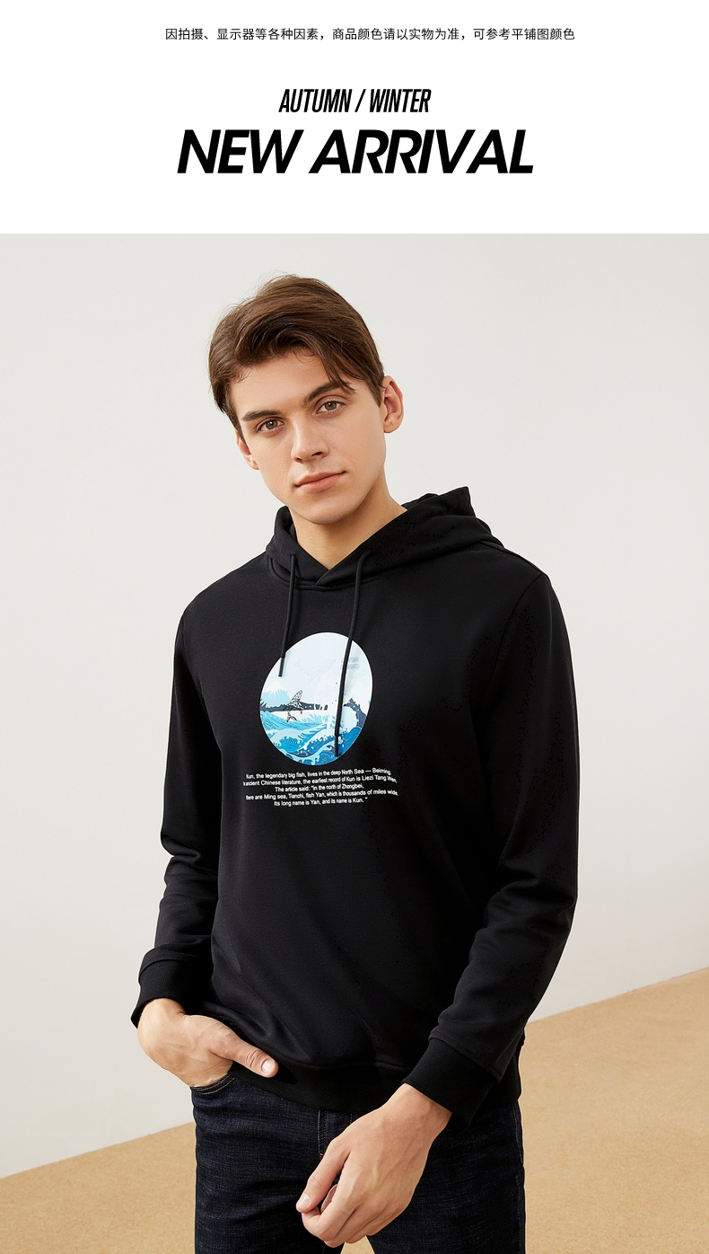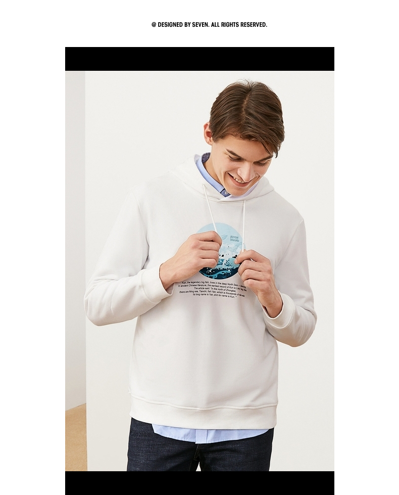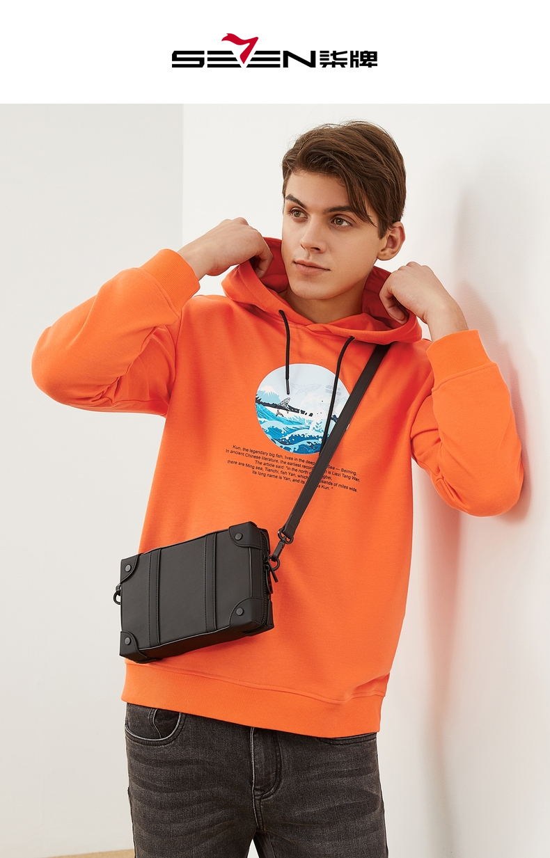 柒牌卫衣男潮ins青年时尚休闲字母印花连帽套头情侣上衣 121W70350
