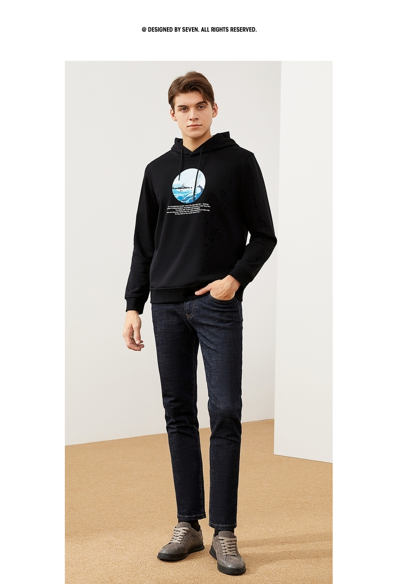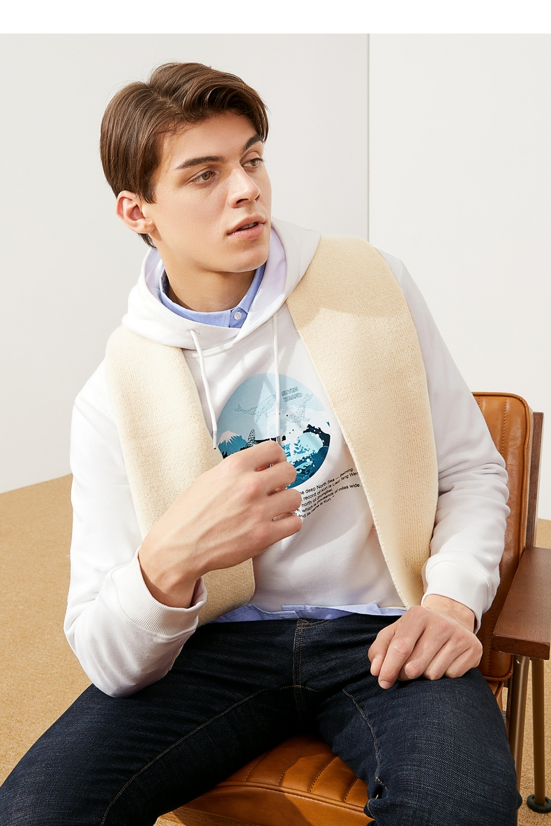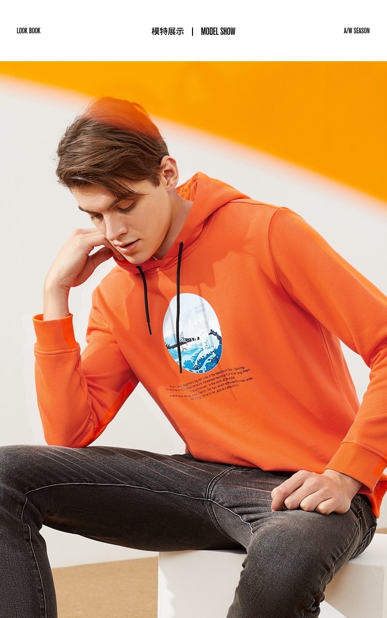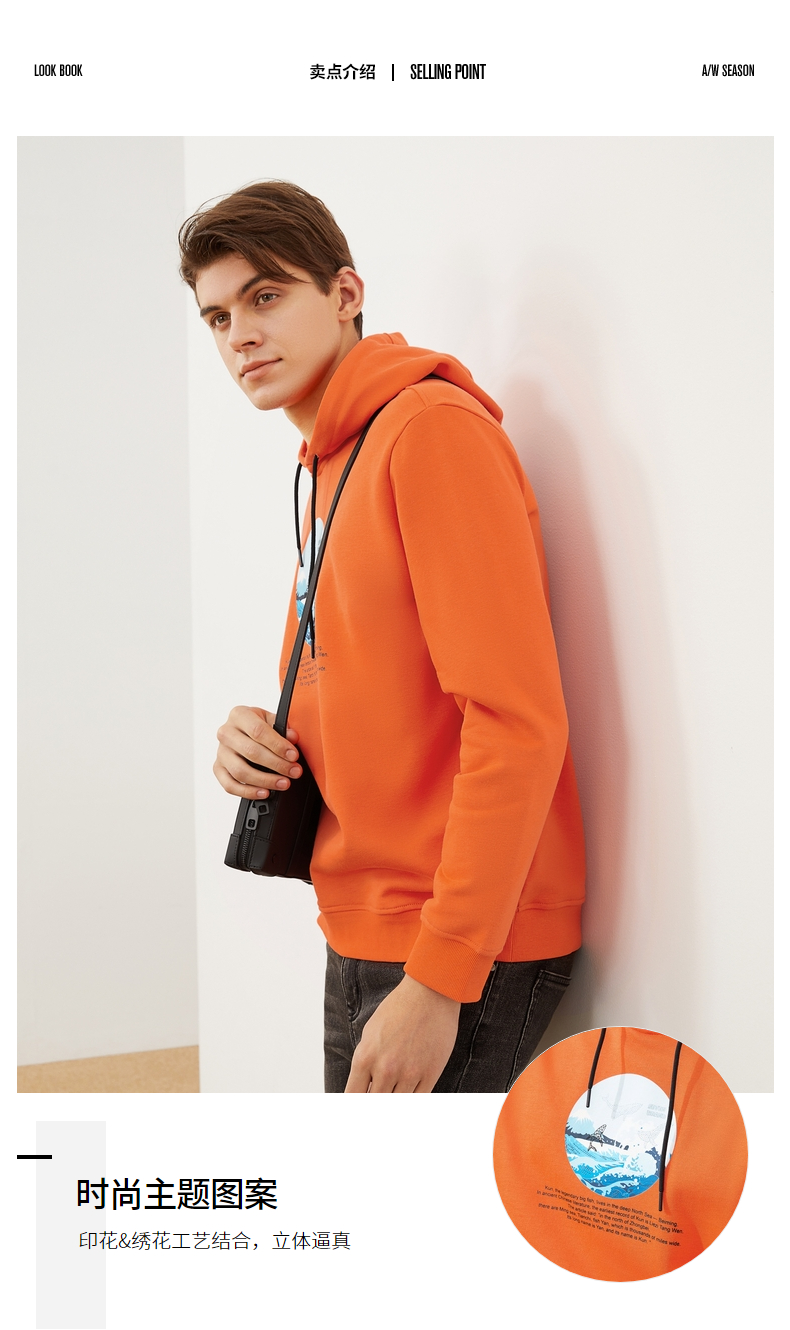 柒牌卫衣男潮ins青年时尚休闲字母印花连帽套头情侣上衣 121W70350