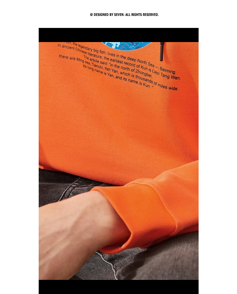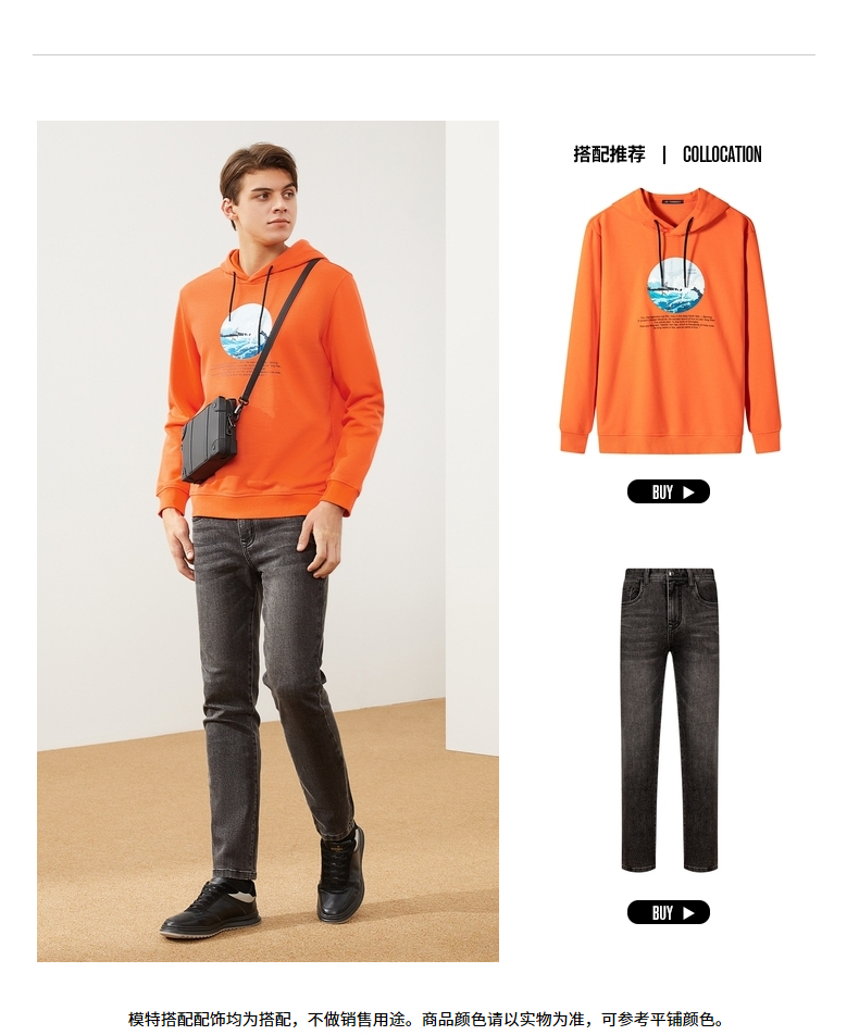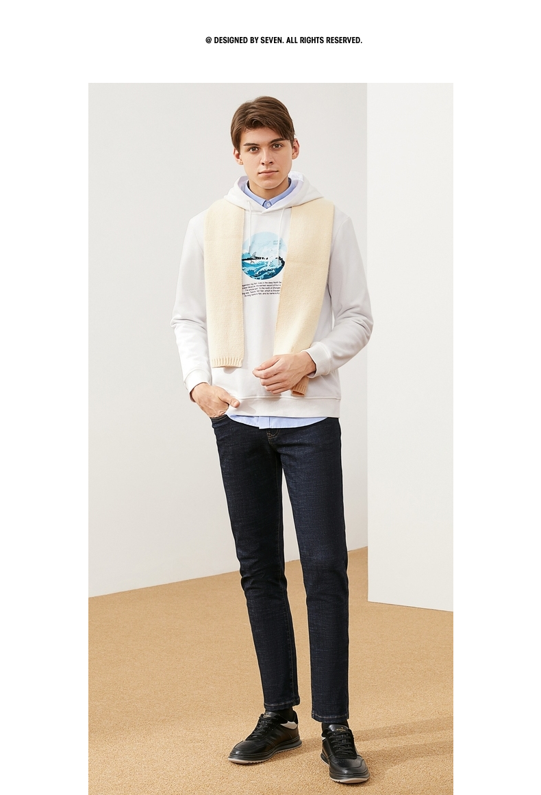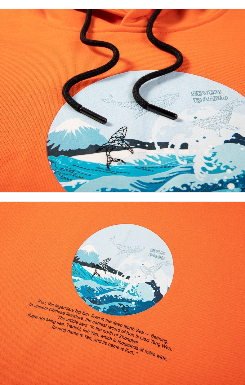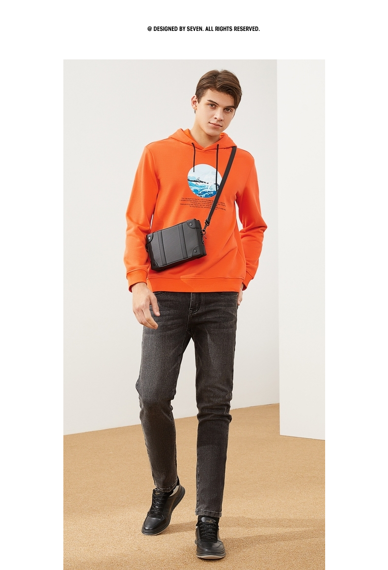 柒牌卫衣男潮ins青年时尚休闲字母印花连帽套头情侣上衣 121W70350