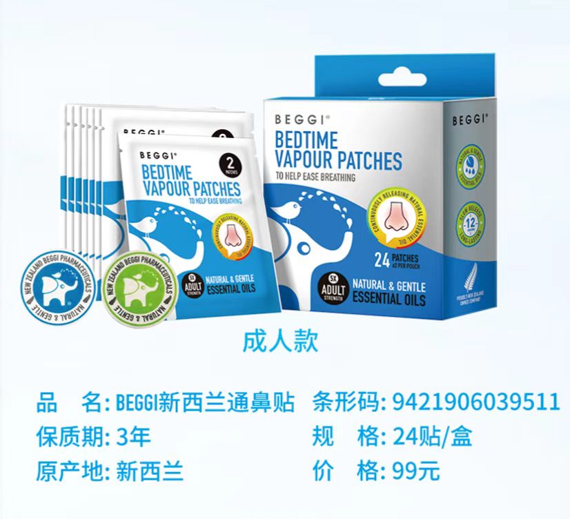 新西兰BEGGI鼻精灵通气鼻精油贴