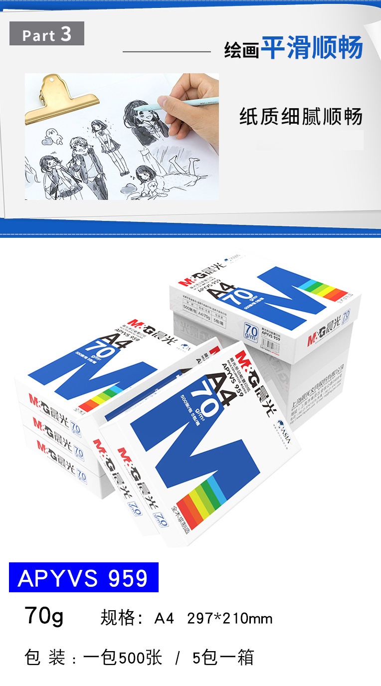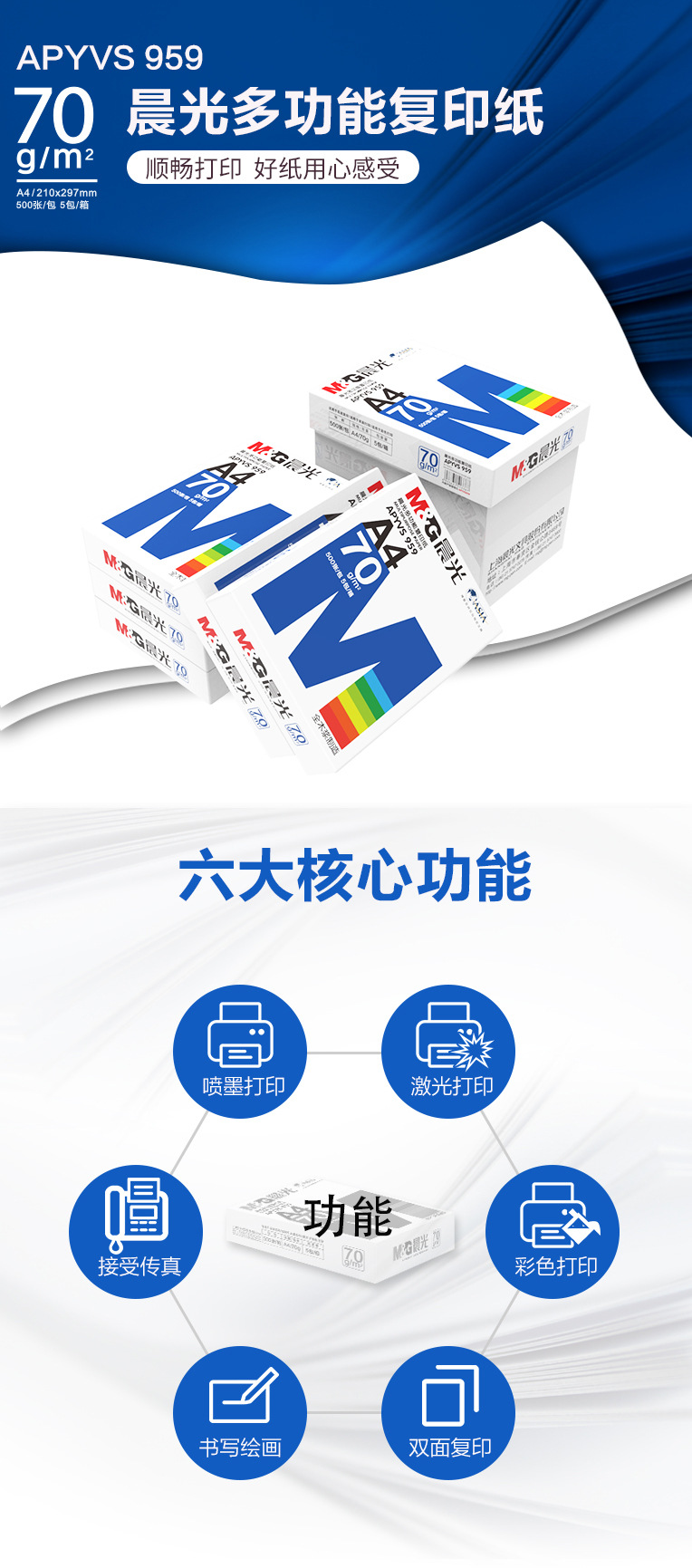 晨光a4打印纸白色500张70克A4纸文具草稿纸80g克整箱批发a4复印纸