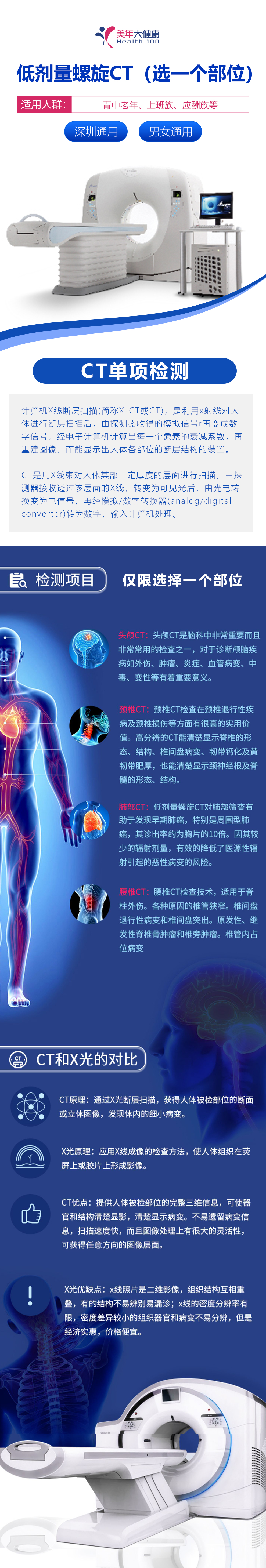 (由于CT有一定的辐射,同一个人同一时间只能做一个部位的CT)。