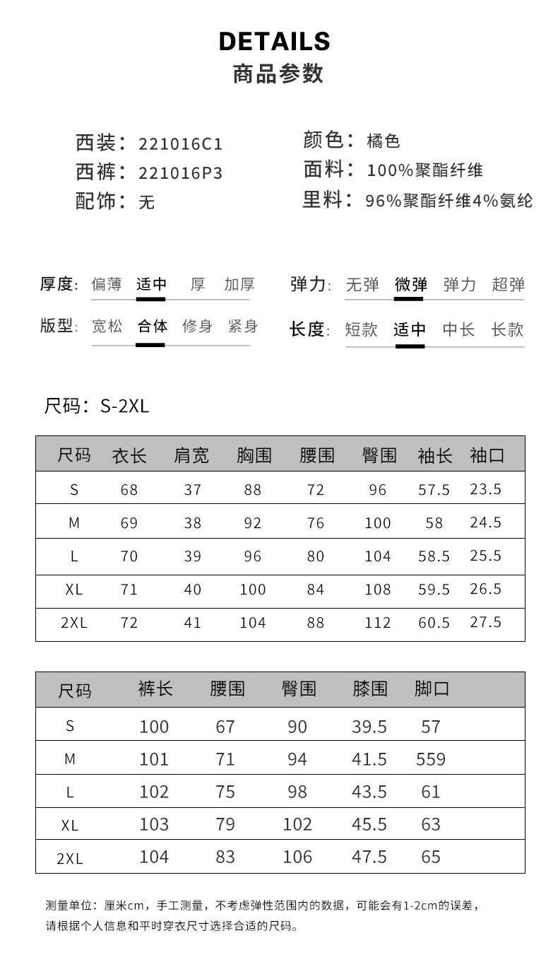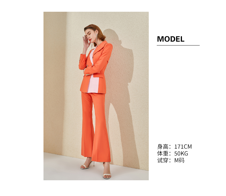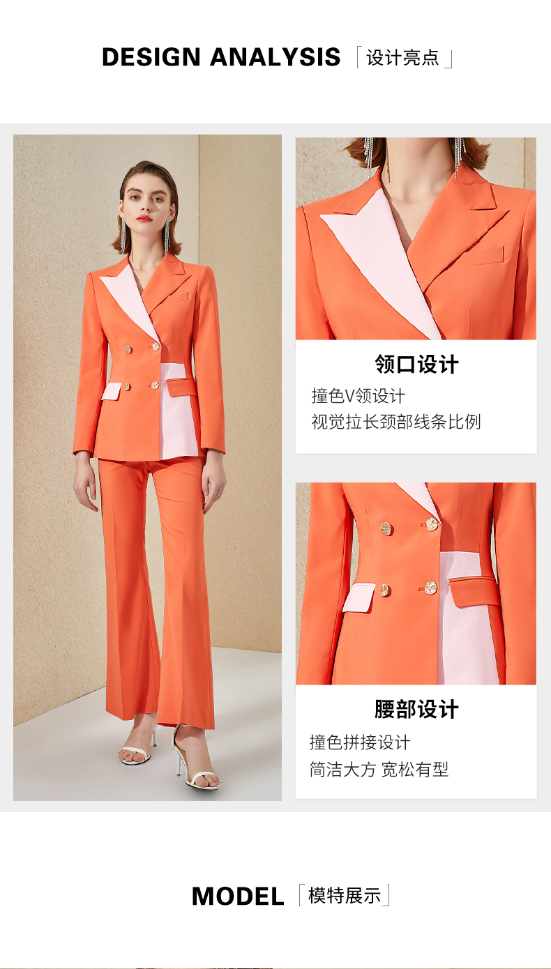 IWY/橘色拼接都市时尚西装套装西服两件套通勤白领221016C1+P3