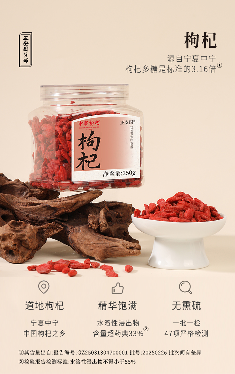 正安 宁夏枸杞 头茬大果自然干燥优质原材 眼睛目明味甘性平精力补充拒绝疲乏 泡水煲汤办公室茶饮家庭食材 枸杞250g/罐