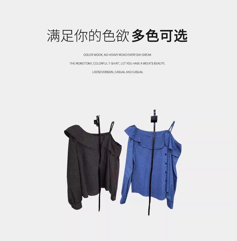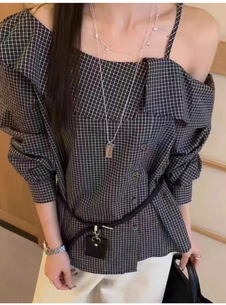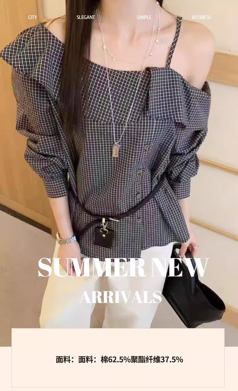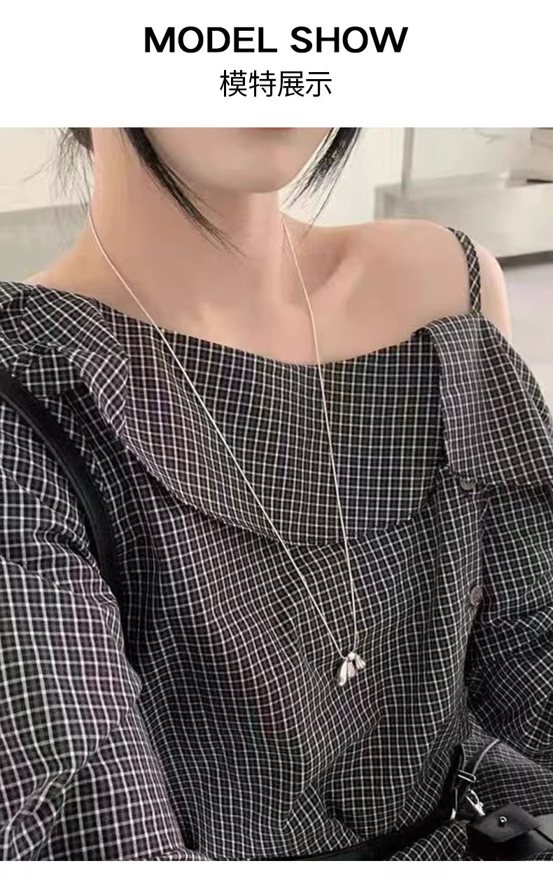 【门店同款】ENJOY秋季“浮光织影”露肩格子上衣 164900030