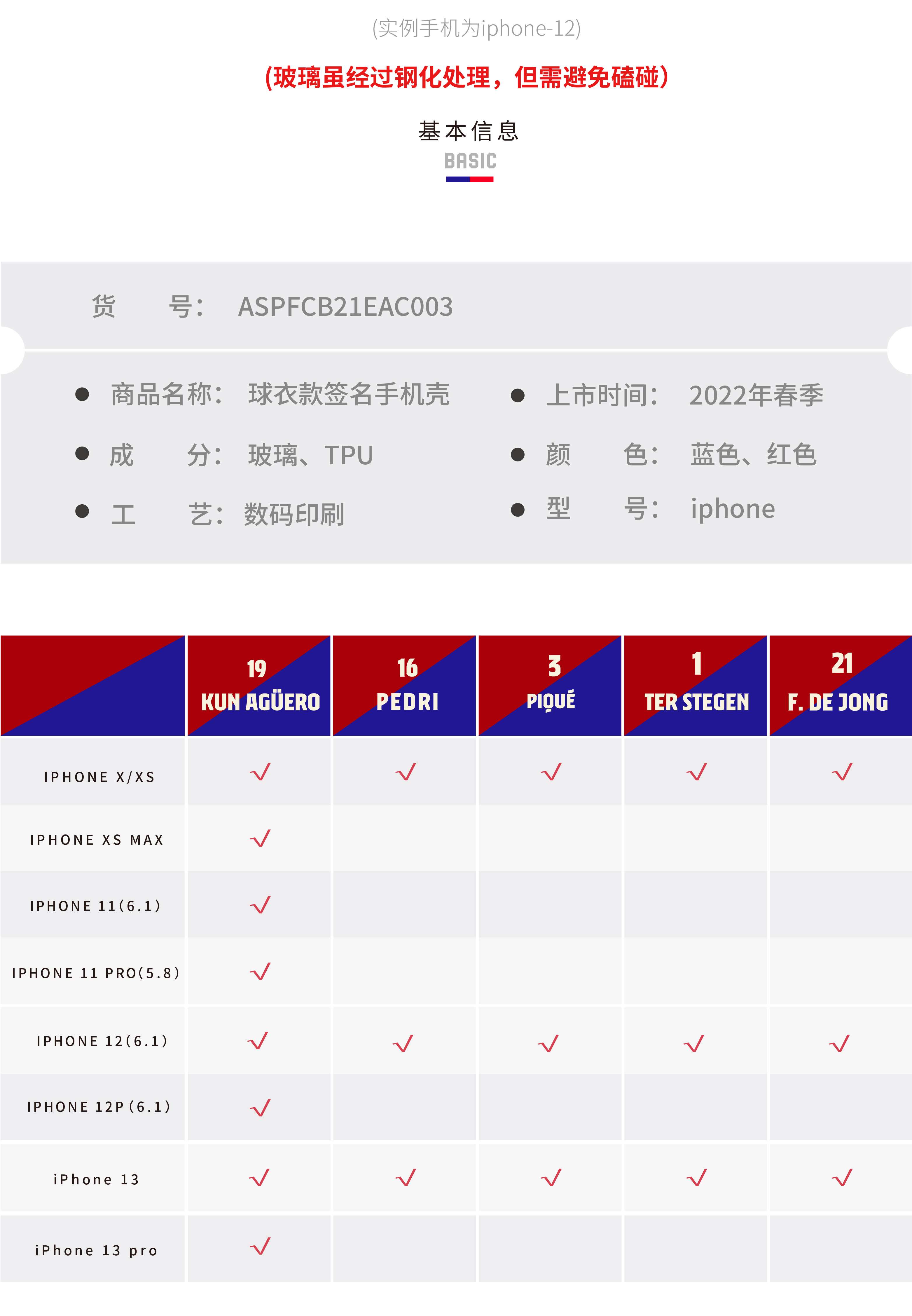 巴塞罗那俱乐部官方商品丨巴萨球衣签名款手机壳德荣钢化玻璃壳
