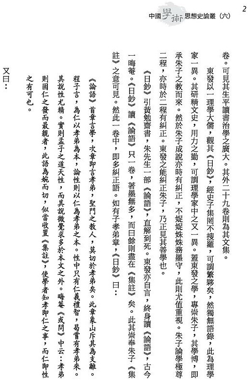 本書為中國學術思想史論叢第六冊,專關宋代以後之學術,含有元一代,以迄明初。其黃東發、王深寧、吳草廬三家學述,敘朱學之流衍,可見元初學術思想之大概。此原為研朱餘瀋之三篇,今并入本論叢,不另成書,以便觀省。讀明初開國諸臣詩文集正續篇,舉諸家詩文,以證明初從龍諸臣,或心存韃庭,或意蔑新朝,怯於進而勇於退,殊未見其揭揚夷夏之辨以為民族革命之號召。作者由文論史,抉隱發微,道前賢所未嘗道,為治吾國史者所不可不知。他如金元道教考,述當時道教之新趨,以明古今之變。理學與藝術一文,則發明學術思想與藝術之相互關係,專舉繪畫一事,元代四大家亦在其內,故附此書,可為研治吾國藝術史者啟一新途。