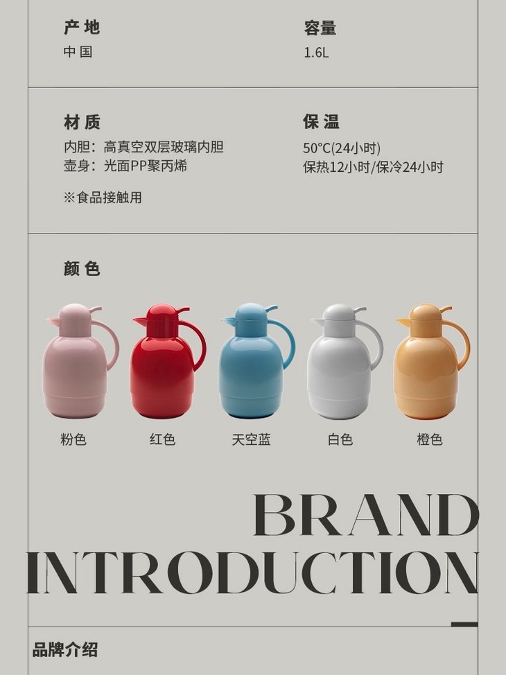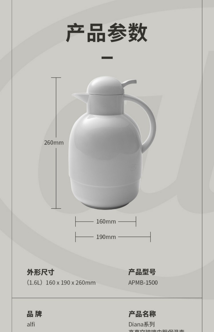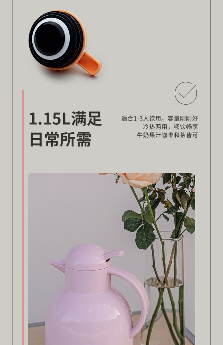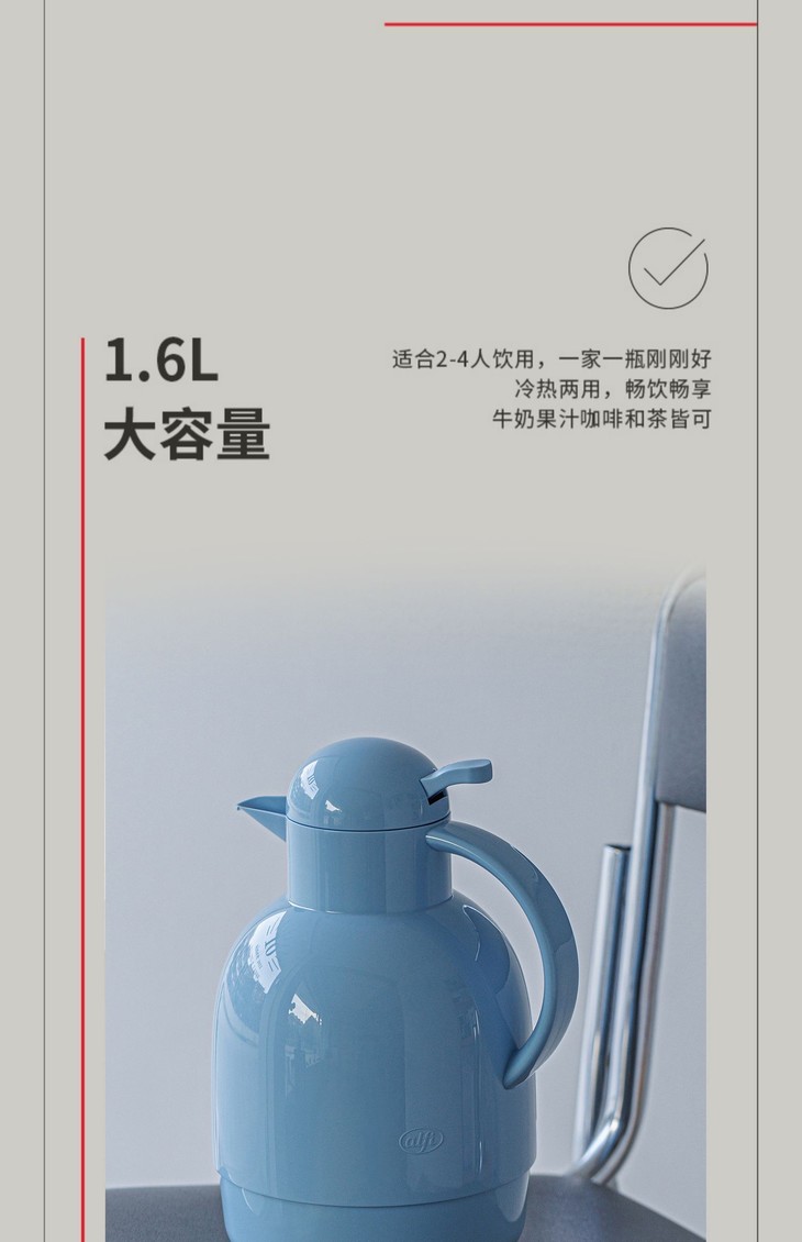 德国世纪品牌alfi保温壶 高真空双层玻璃内胆 安筌环保健K 无毒 5层长效锁温 12小时保温、24小时保冷 单手按压握感舒适 花花团高品质高颜值生活好物分享(1.15L/1.6L容量可选)