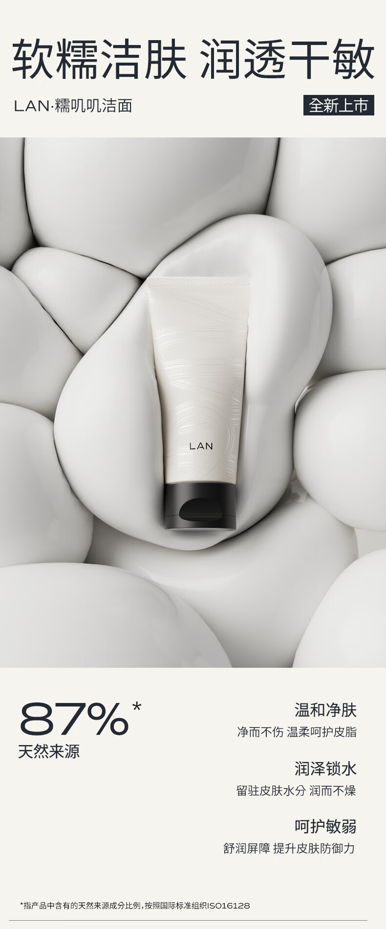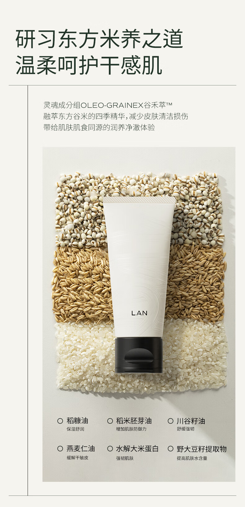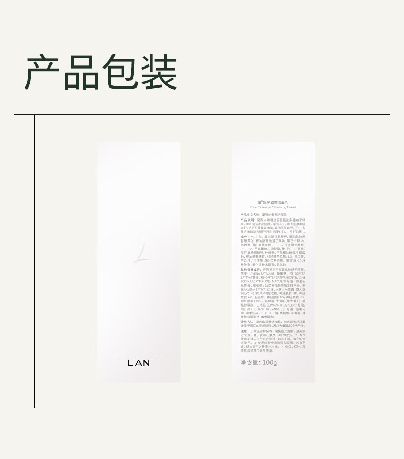 LAN兰糯米洗面奶绵密泡沫温和深层清洁毛孔男女士氨基酸洁面乳