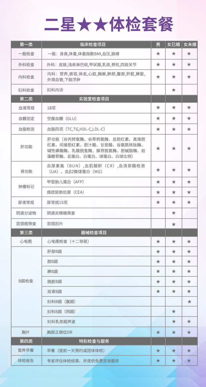 二星体检套餐
