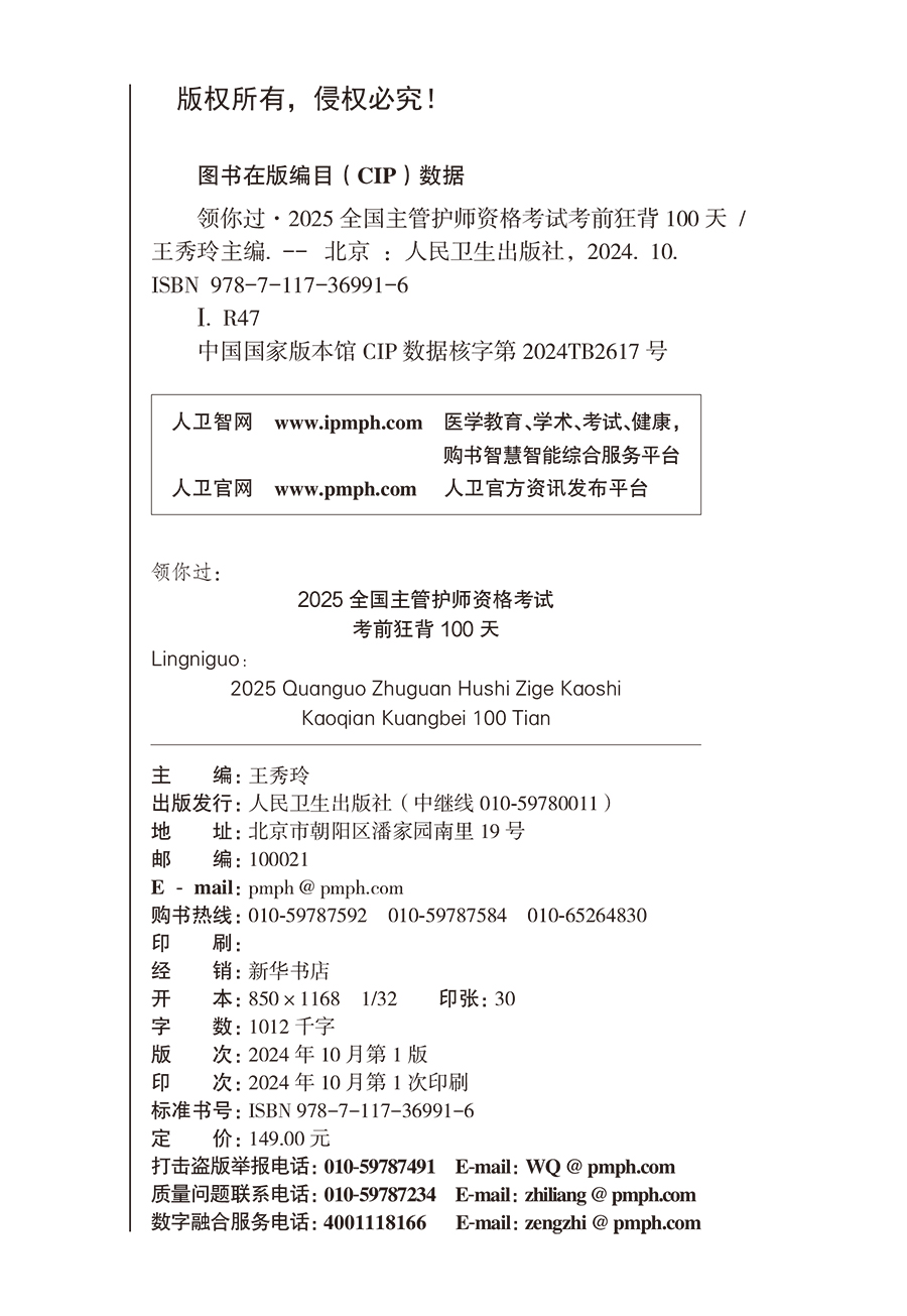 书名:领你过:2025全国主管护师资格考试 考前狂背100天
