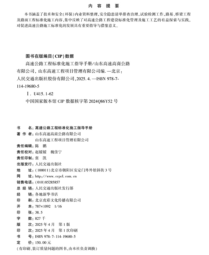书名:高速公路工程标准化施工指导手册