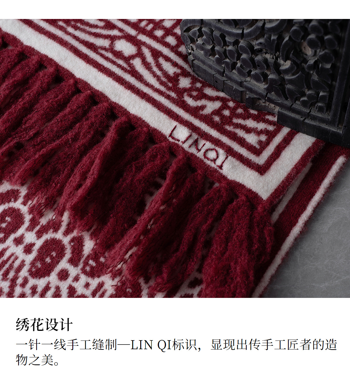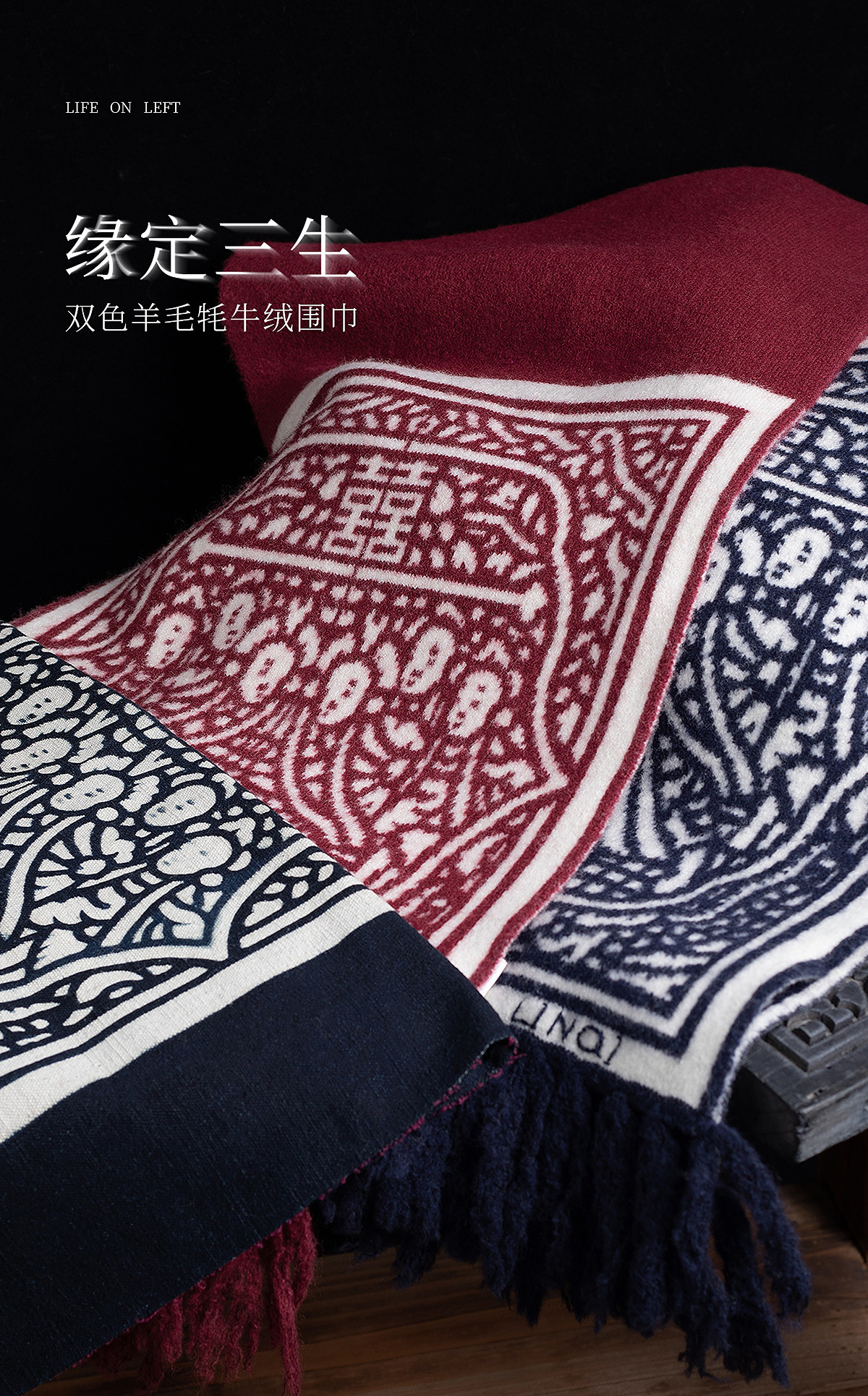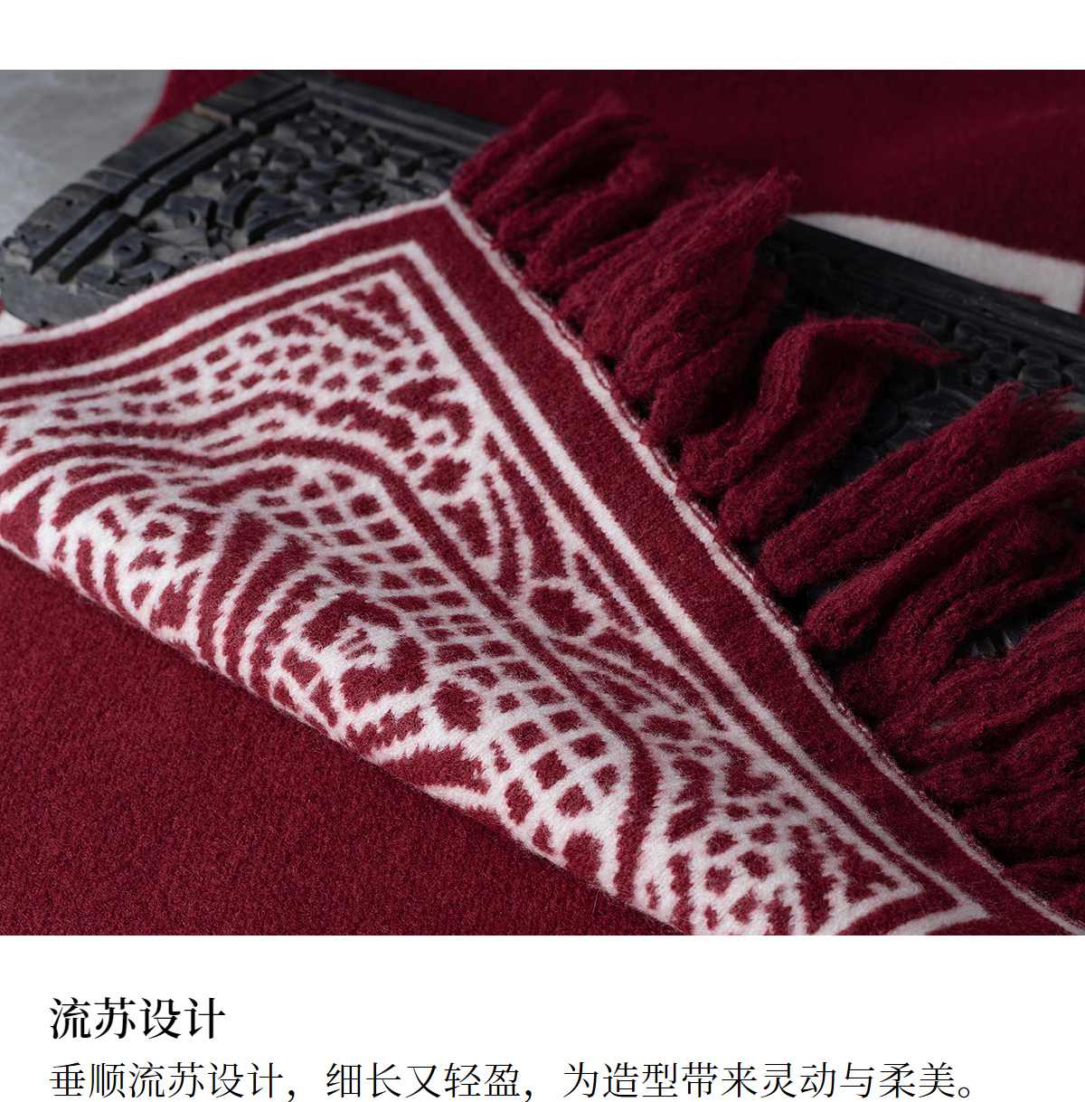 【林栖设计小店】【限量款】(红色现货5条)【缘定三生】高定双色绵羊毛牦牛绒流苏围巾披肩2025新品2951291