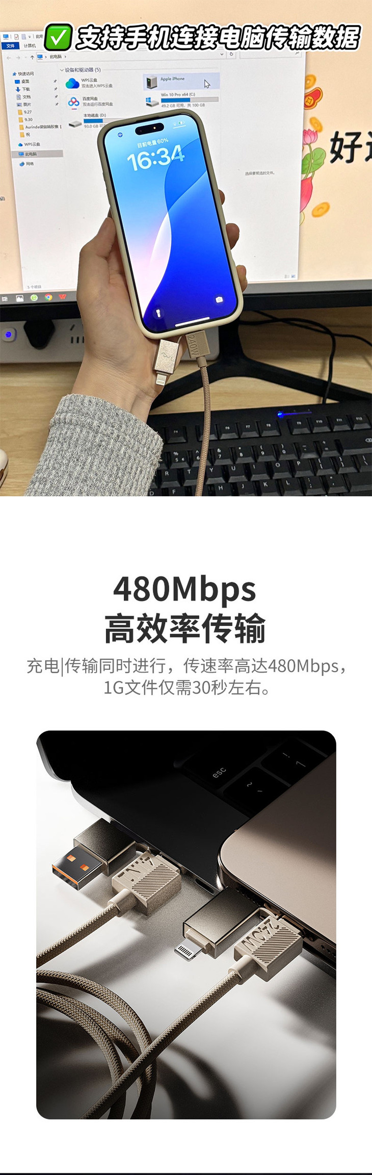 ✅高速传数据❗️充电传文件两不误 这根线不只是能充电,还支持USB和Type-C双接口高速传数据 苹果、安卓设备都能用,不用再单找数据线 传输速度也给力,每秒能到480Mbps❗️ 传1GB的照片或文件,最快30秒就搞定,比普通线快太多了 而且能一边给设备充电,一边同步传数据 办公导资料、居家传照片都不耽误,效率直接拉满