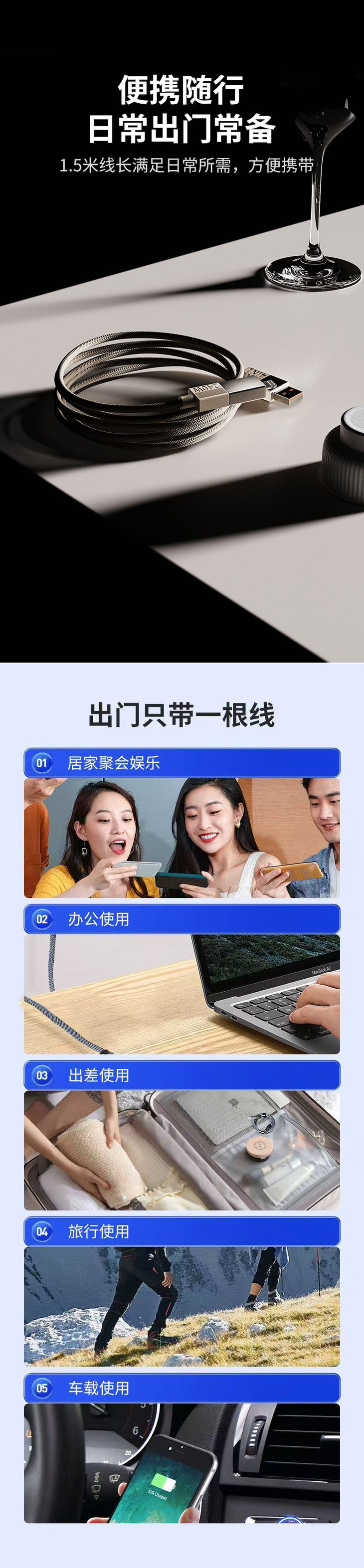 ✅1.5米加长设计:比市面普通线更长,使用更方便 这根数据线特意做了1.5米加长款,比市面上常见的1米/1.2米线更长 彻底解决“线短够不着”的麻烦❗️❗️ ✔️居家时插客厅插座,手机放沙发、茶几上都能轻松充电 ✔️卧床充电时,线够长能自在放床头,不用怕翻身扯到线 ✔️办公时连电脑,设备放桌面、腿上甚至旁边工位都够得到,打字、移动设备不受束缚 加长但不累赘,收纳时卷起来也不占太多空间,比普通短线使用感好太多❗️
