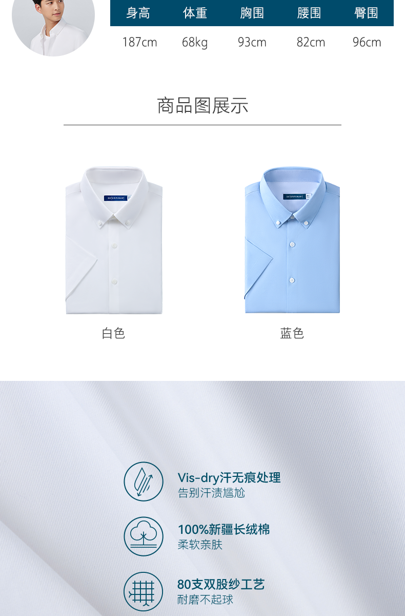 十如仕钮扣领拒水汗无痕商务休闲短袖衬衫-SS01-03