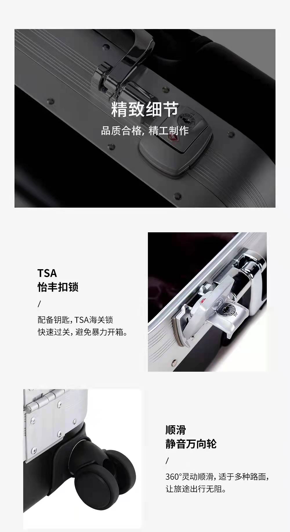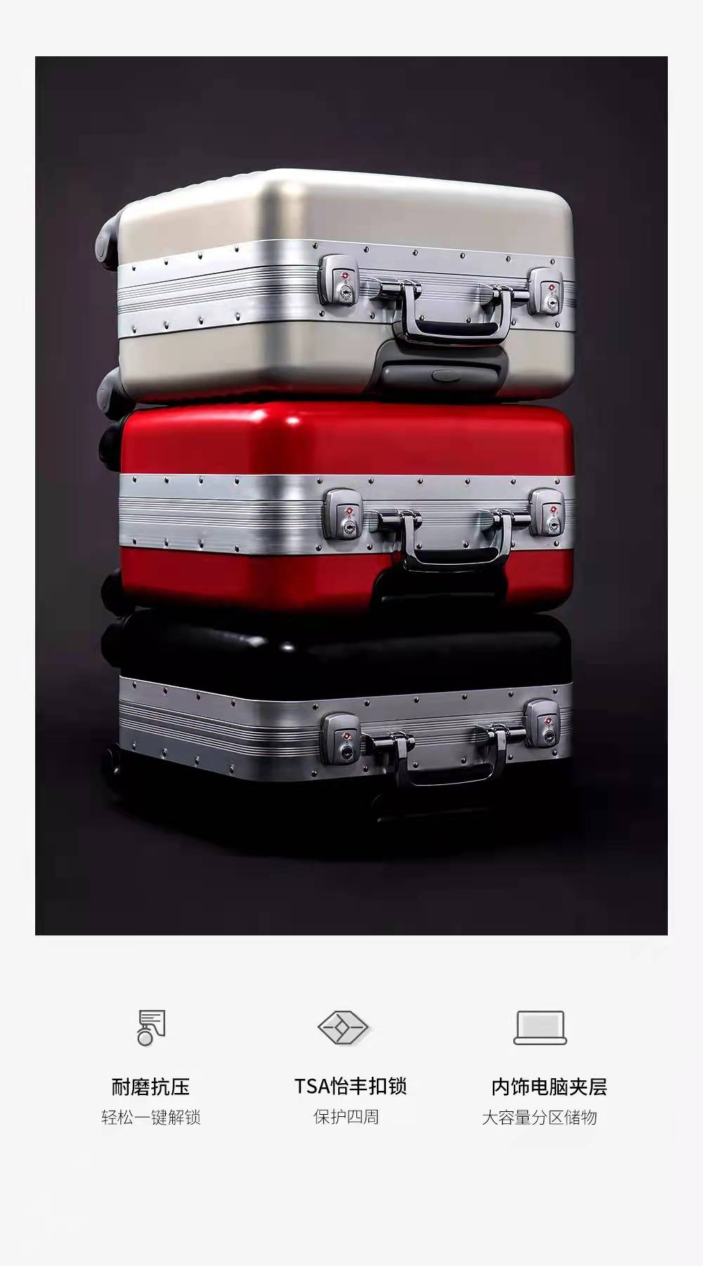 20寸星空纯PC铝框登机箱静音万向轮拉杆箱旅行箱行李箱女A-9335