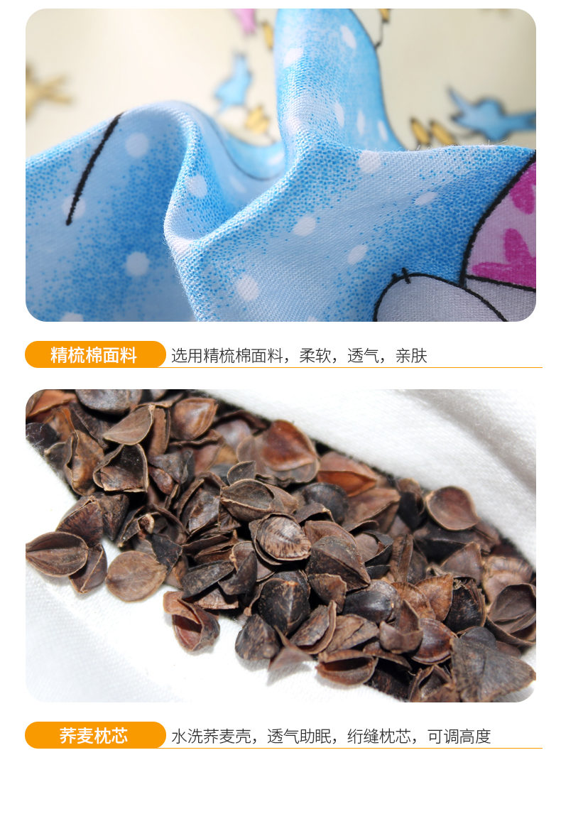 龙之涵儿童全棉荞麦壳枕头