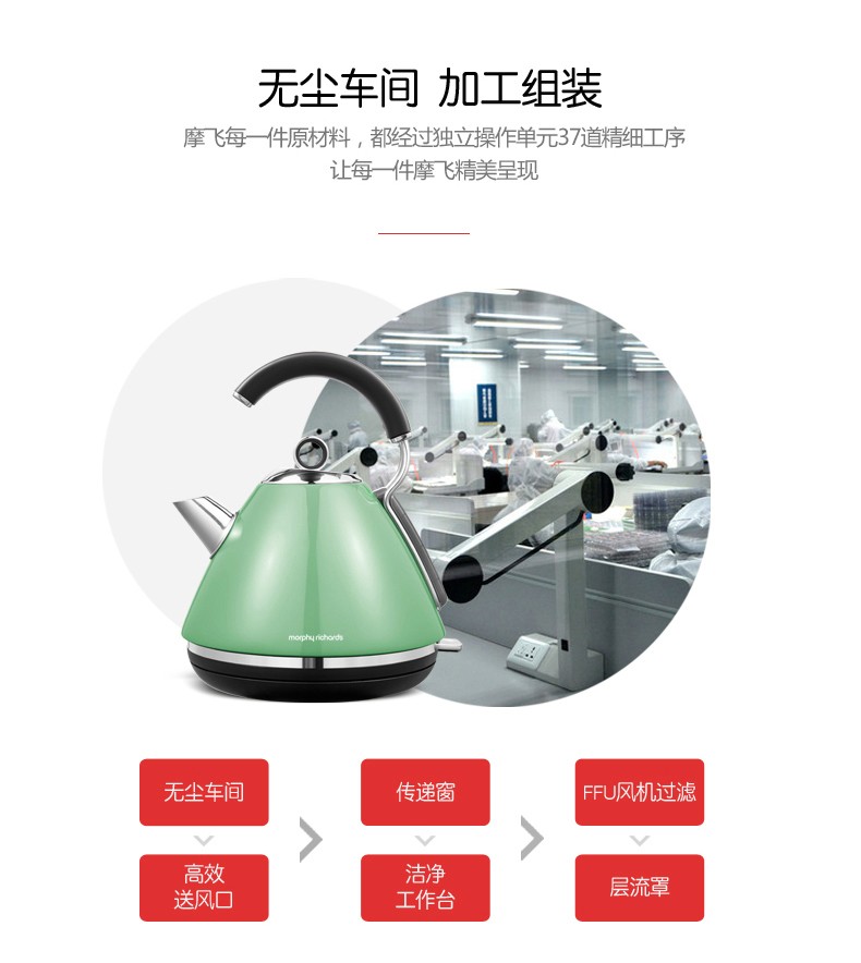 摩飞电器(Morphyrichards) 家用电热水壶进口304不锈钢大容量烧水壶 MR7456A