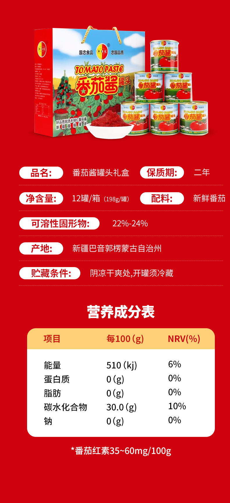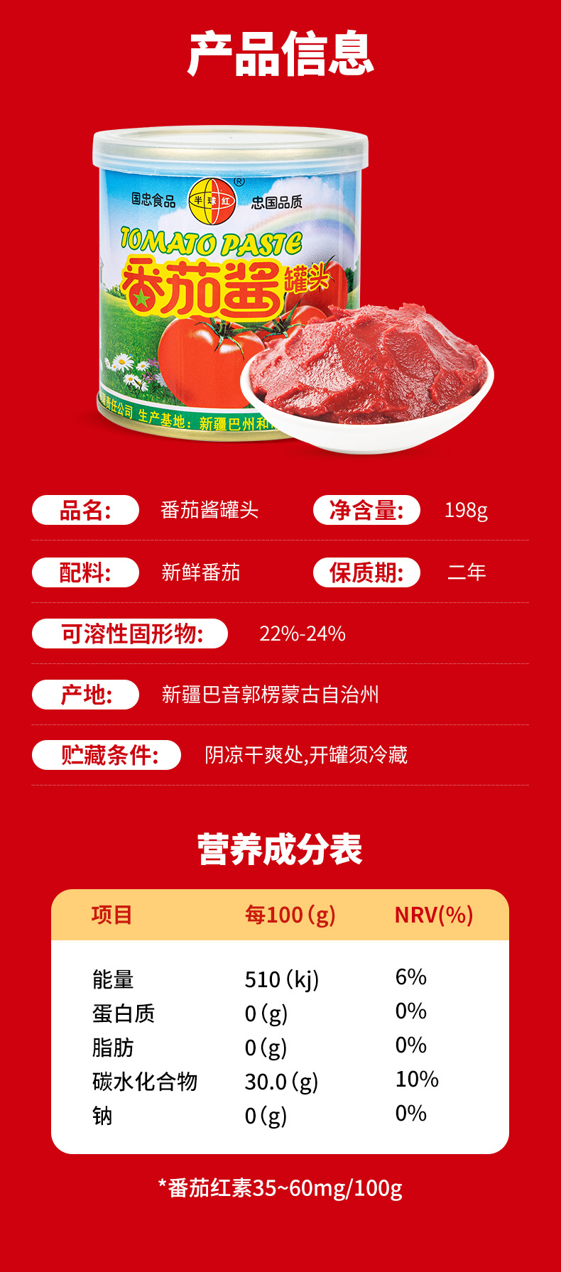 【2罐超值装❗️新疆番茄酱】无任何添加,新疆鲜果直灌,锁住新鲜,保留营养,半球红小包装家用198克直灌非挤压瓶装更新鲜QQ