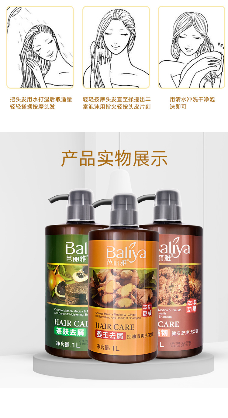 芭丽雅茶麸去屑止痒水润/姜王去屑控油清爽洗发露1L