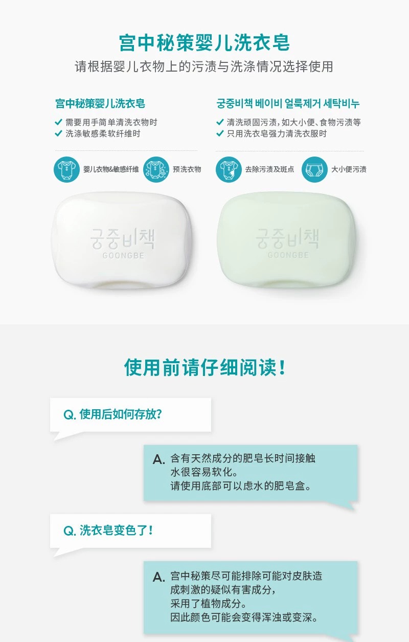 【中欧班列精选4块】韩国宫中秘策婴儿洗衣皂 原装进口宝宝衣物洗衣皂清洁皂 200g/块WHBX