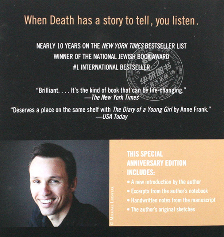 Markus Zusak马克斯·苏萨克是澳大利亚著名小说家,著有许多畅销全球的青年小说读物。其作品广受全世界读者的青睐,被翻译为四十几种语言。他的代表作《偷书贼》曾经在《纽约时报》畅销书排行榜上停留十年之久。Markus Zusak was born in 1975 and is the author of five books, including the international bestseller,The Book Thief, which is translated into more than forty languages. First released in 2005,The Book Thief has spent more than a decade on the New York Times bestseller list, and still remains there to this day. In 2014, Zusak received the American Library Association’s Margaret Edwards award for significant and lasting contribution to young adult literature, for his body of work ranging fromThe Underdog up toThe The Book Thief.