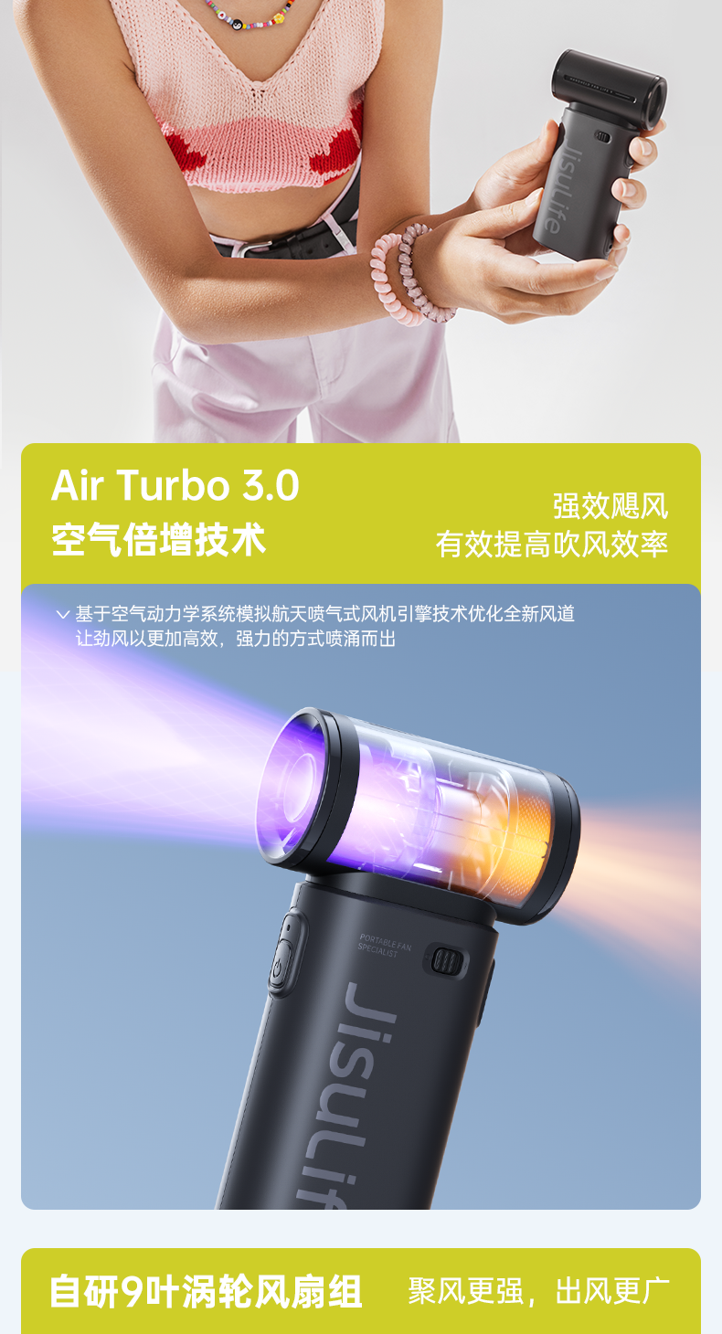 几素超高速节能手持小风炮迷你便携式usb小风扇强力散热桌面制冷降温神器无叶涡轮静音大风力电风扇随身小型