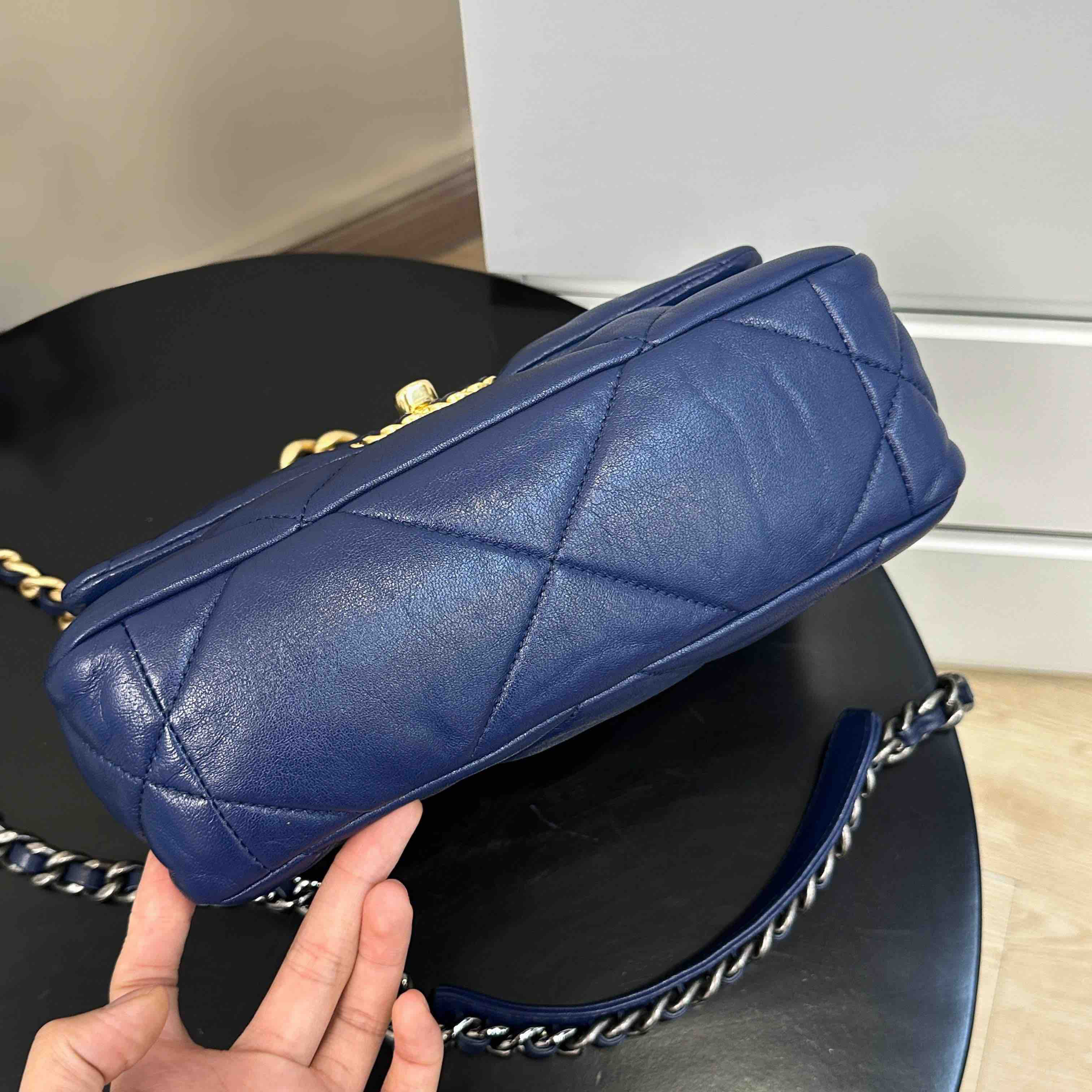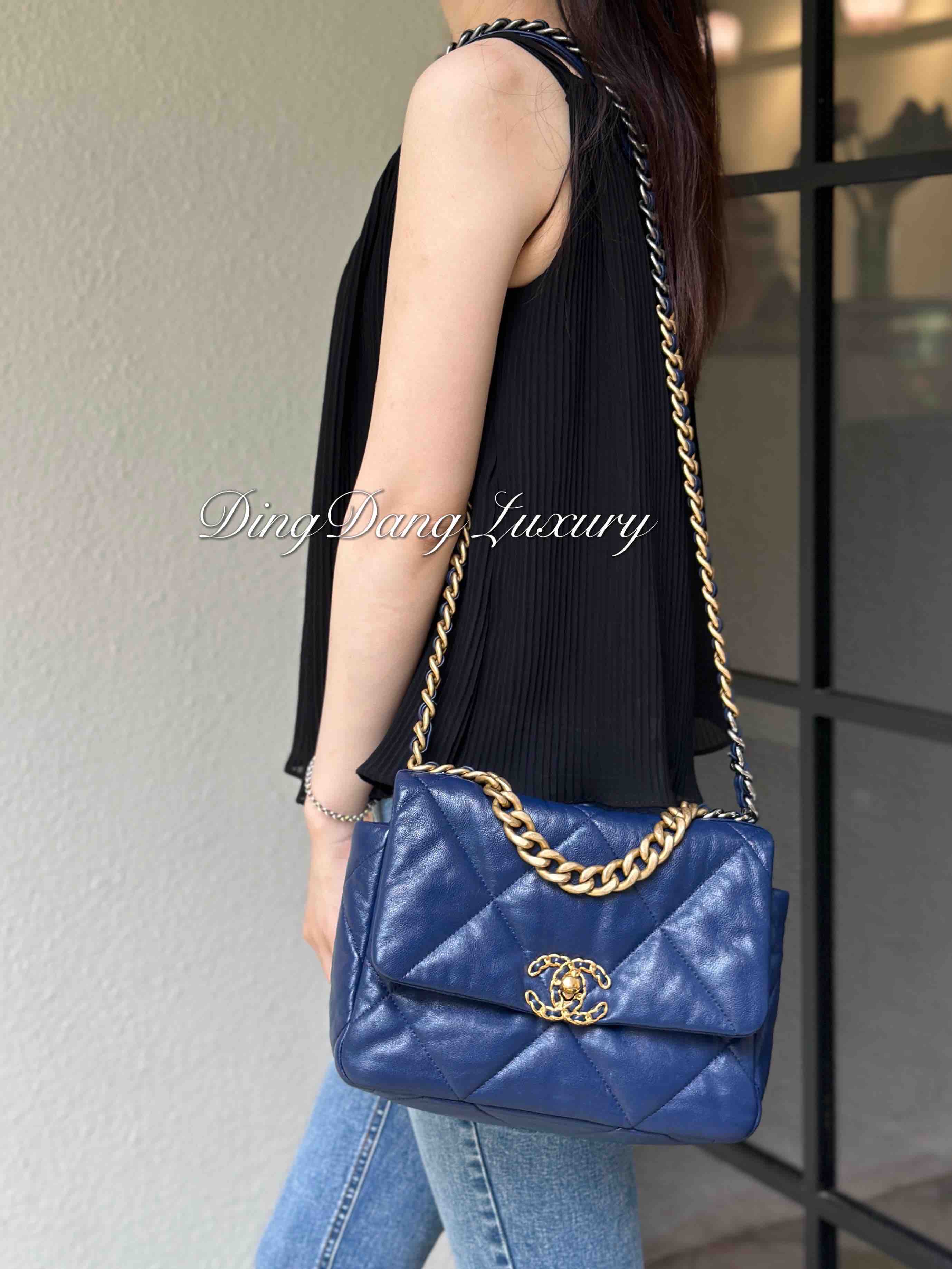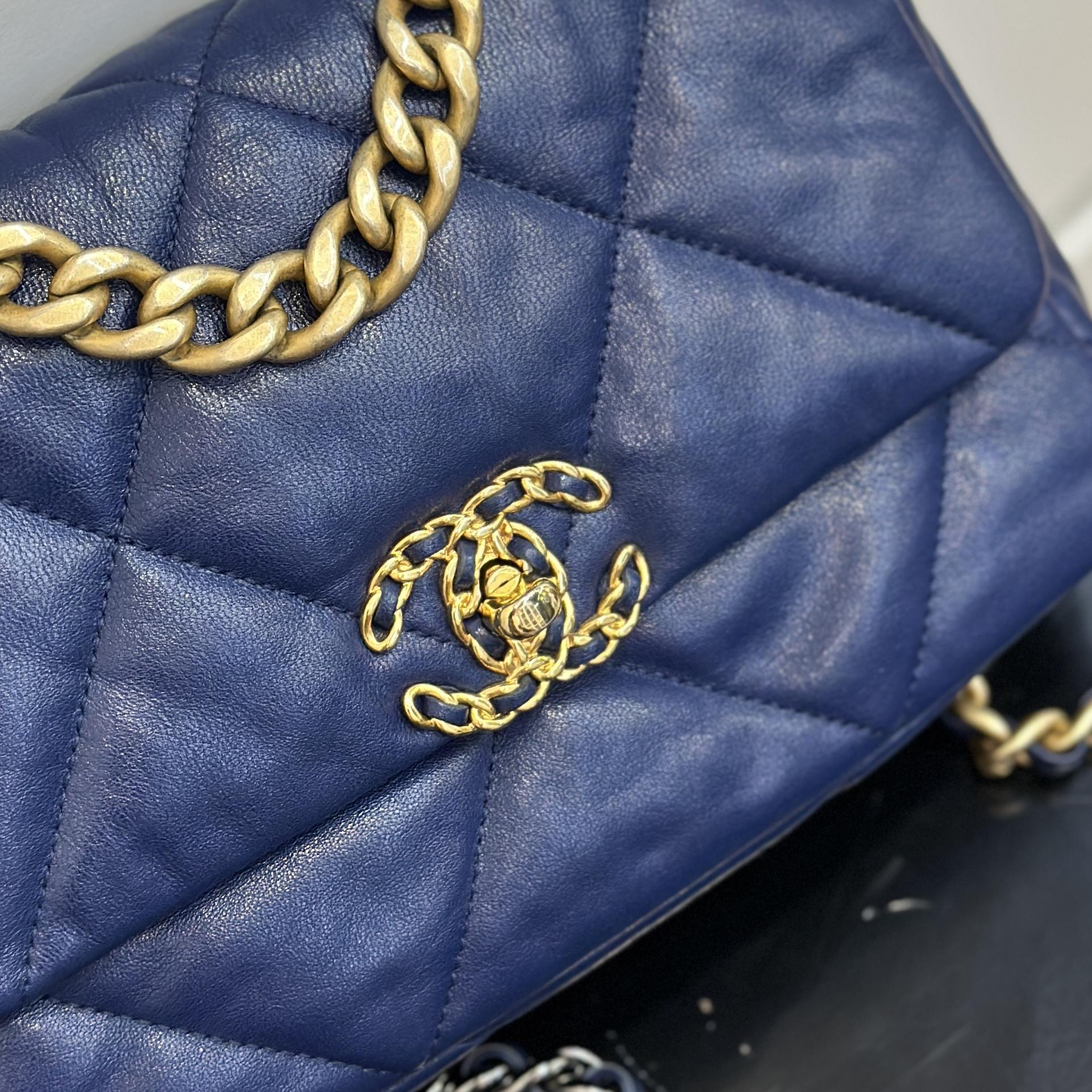 CHANEL 19bag 山羊皮 蓝金 小号 斜挎包