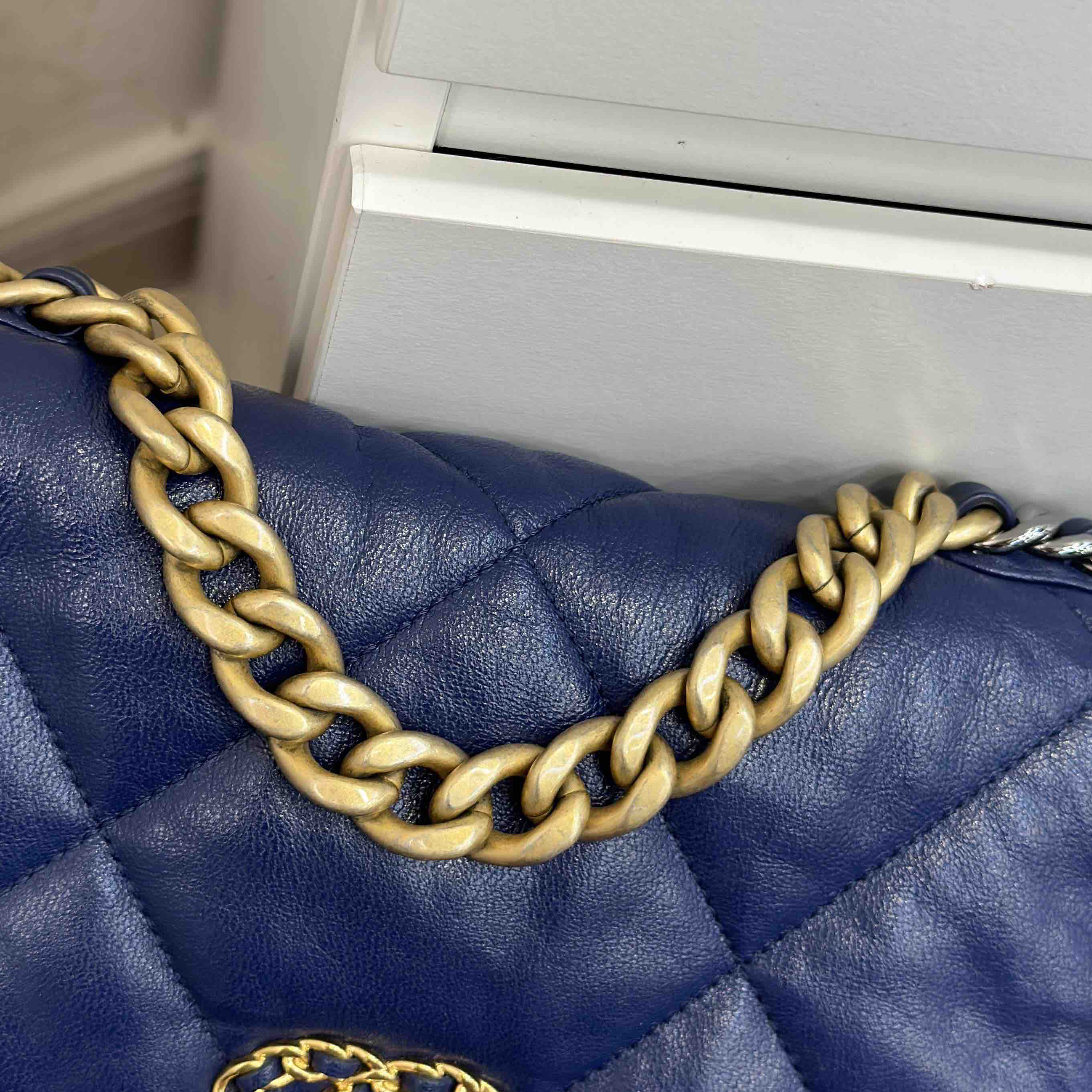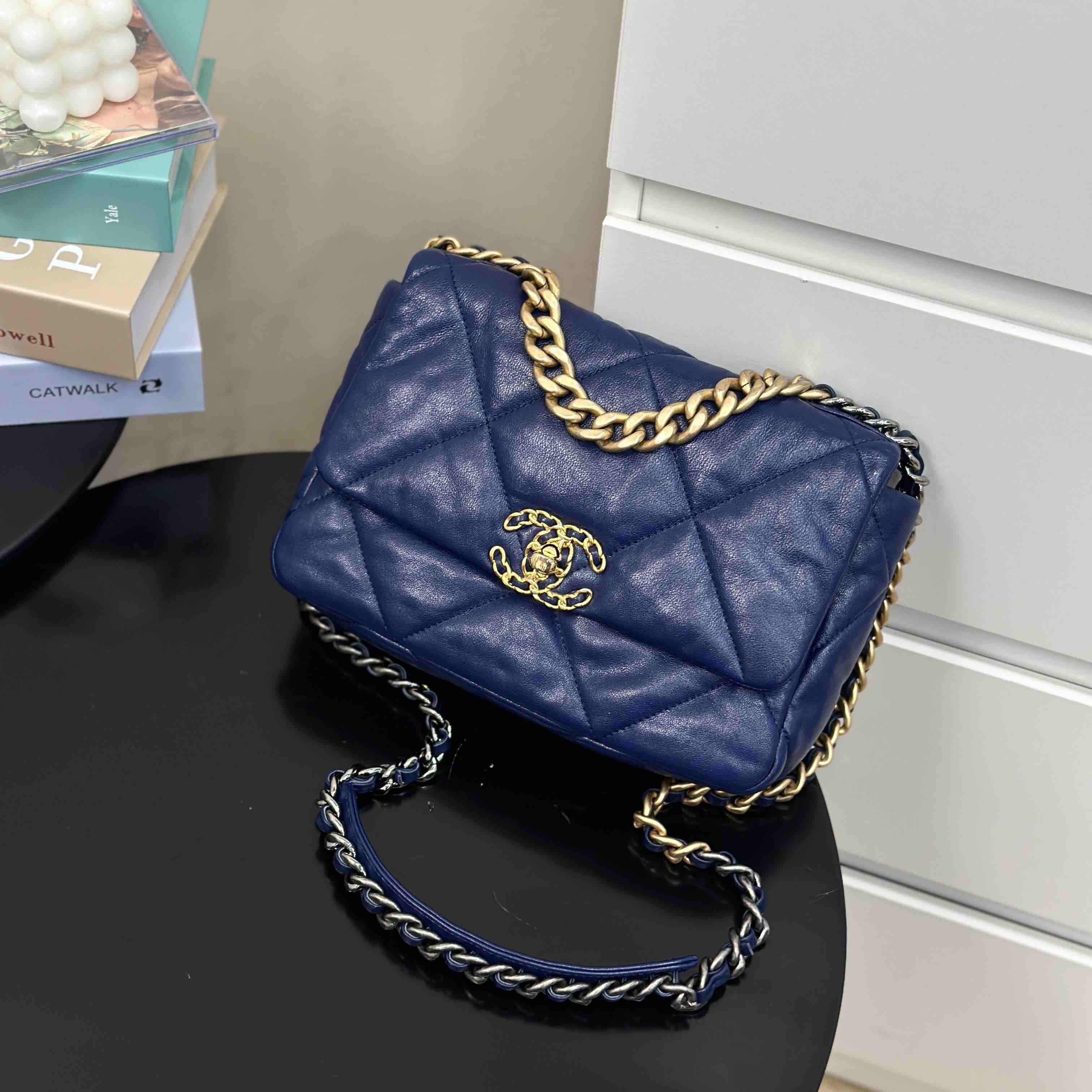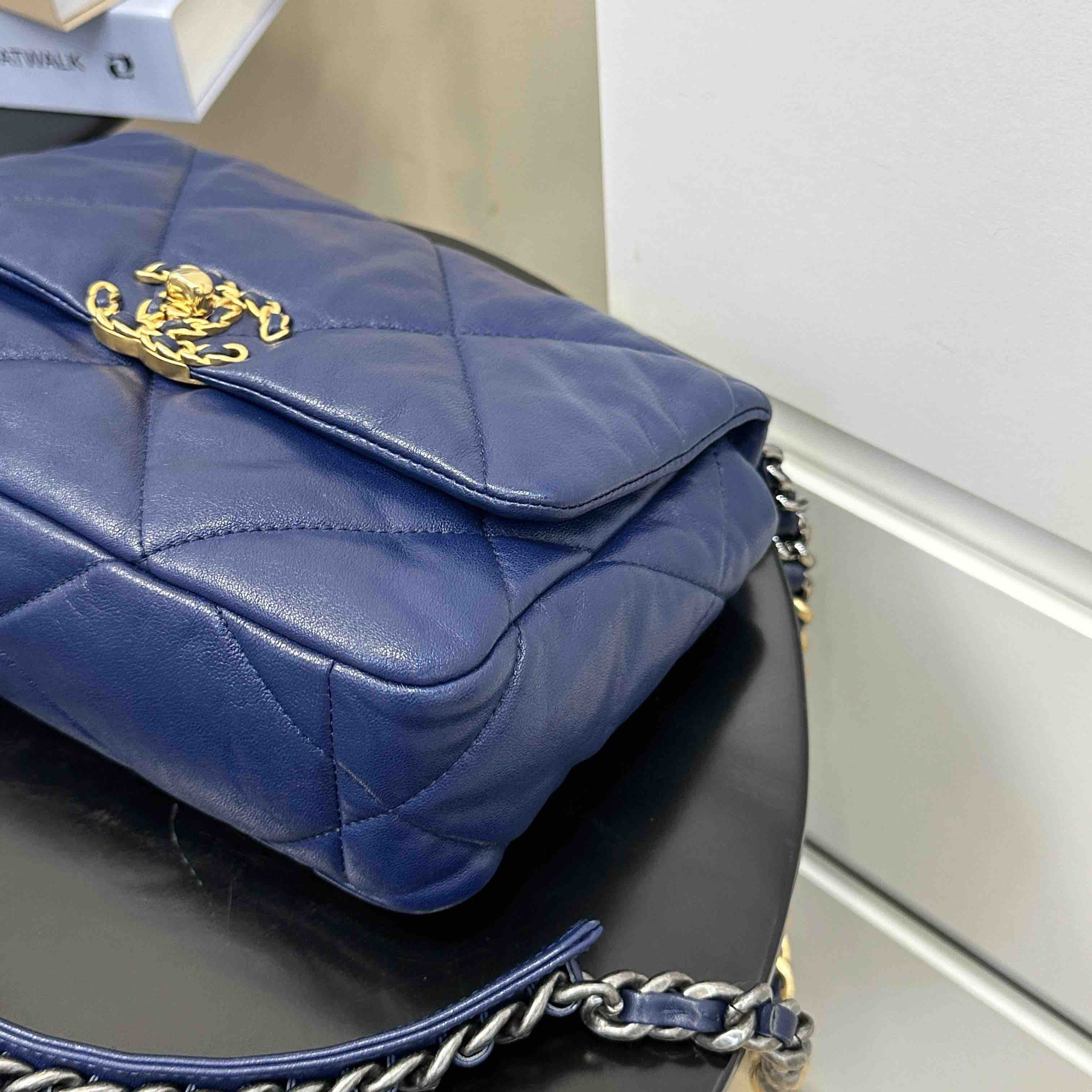 CHANEL 19bag 山羊皮 蓝金 小号 斜挎包