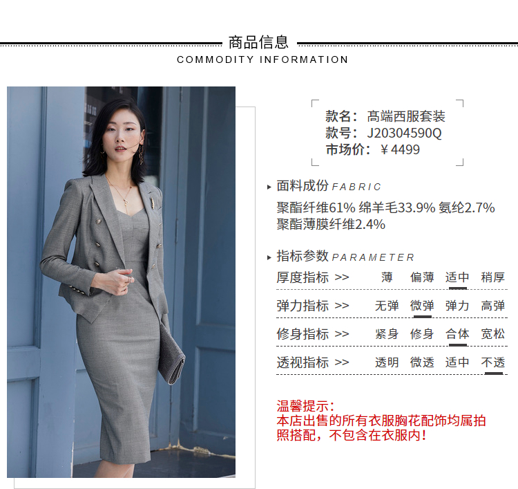 “闪耀千鸟格”颈袖添香-套裙-J20304590 颈袖添香品牌秋冬装职业装女装套装ol女士正装西装套裙 职业装套装裙
