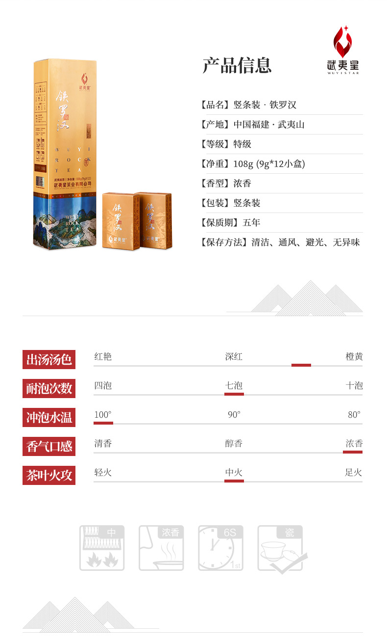 武夷星竖条装铁罗汉108g武夷名枞武夷岩茶特级乌龙茶武夷山茶叶