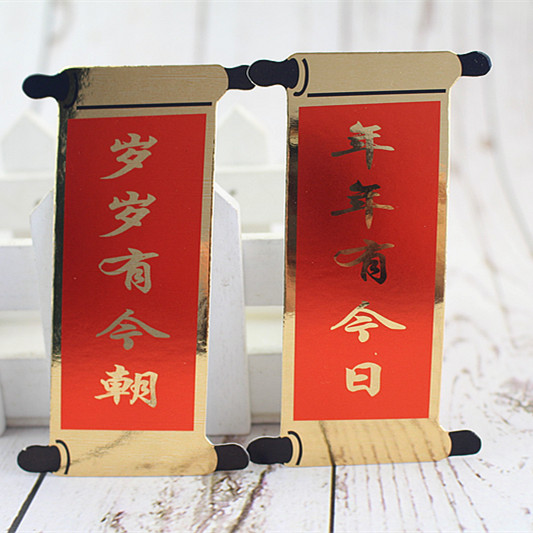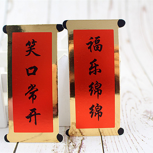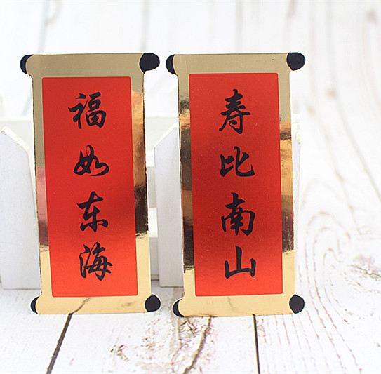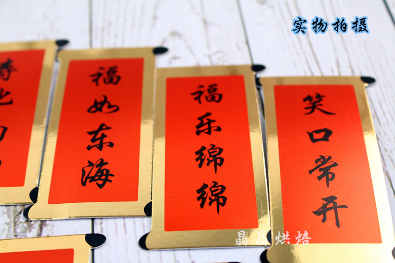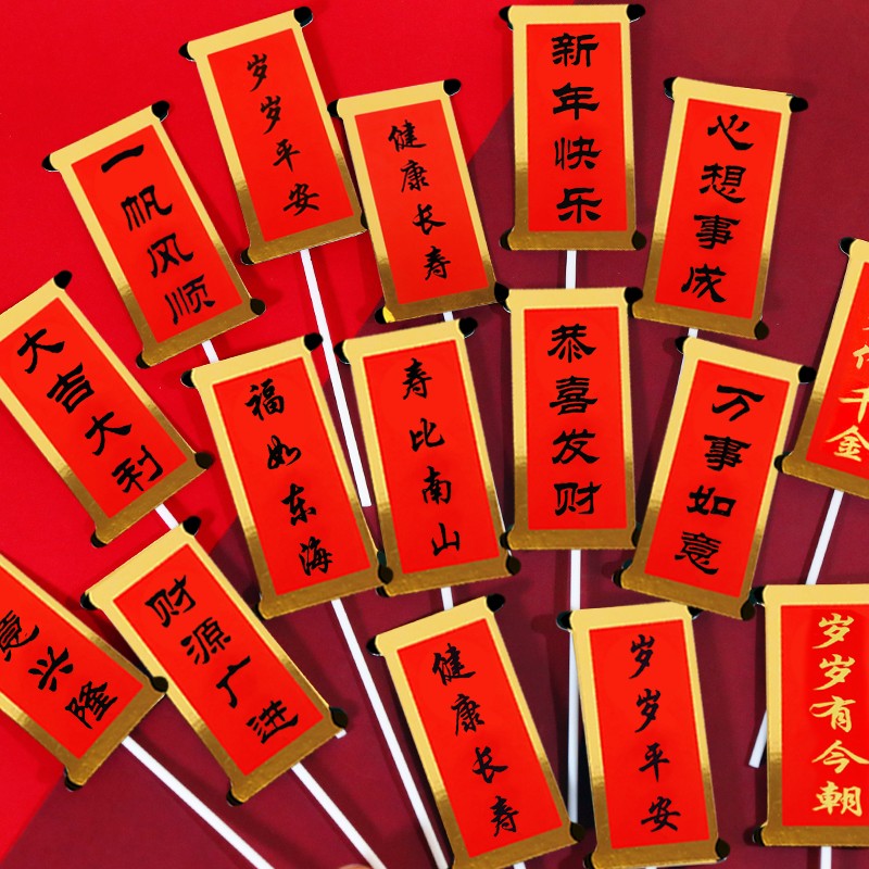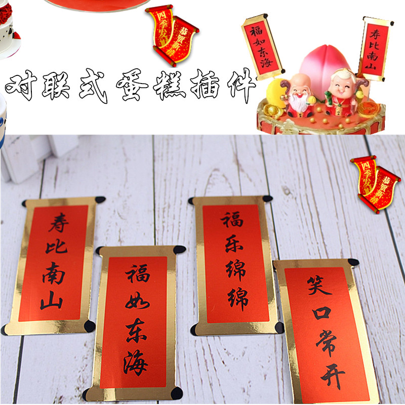 对联/対旗式插件 长辈祝寿蛋糕插件插牌 红色对联纸牌福如东海寿比南山恭贺新禧步步高升生意兴隆财源广进等