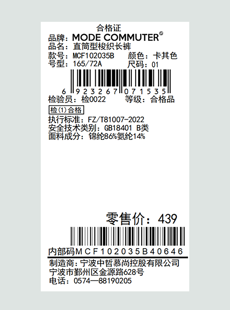MODE COMMUTER | MC高弹高密斜纹料抗皱耐摩擦不起球直筒梭织长裤