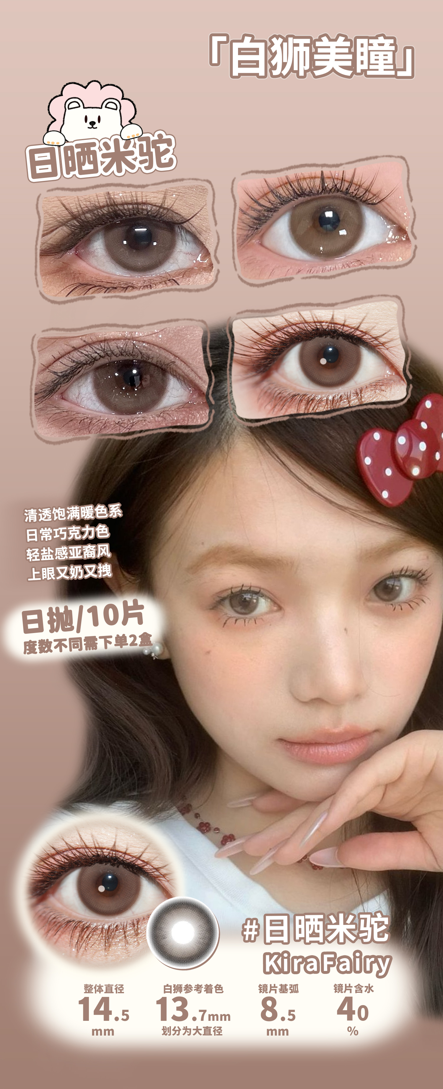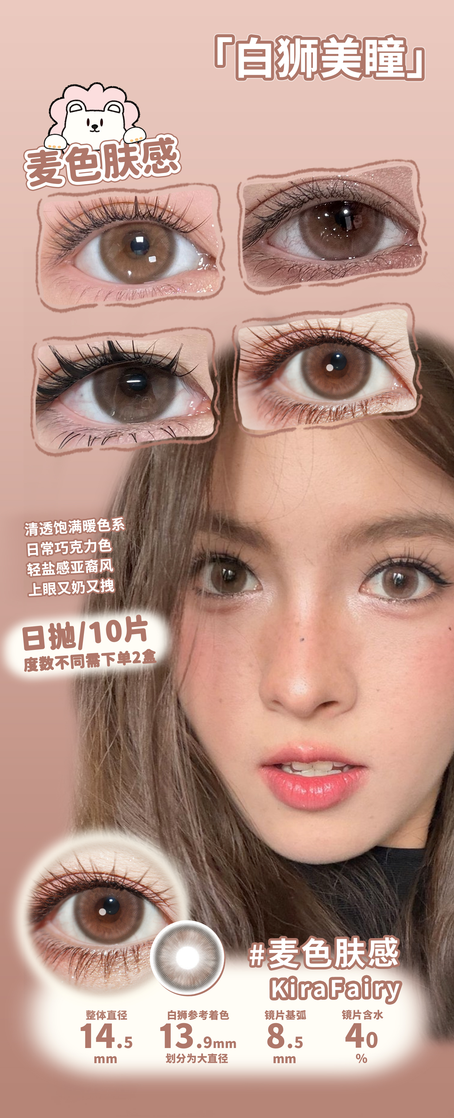 Kira Fairy旗下 ·鹦鹉螺&日晒米驼&原生榛子&麦色肤感·14.5mm白狮参考着色大直径| 日抛十片装