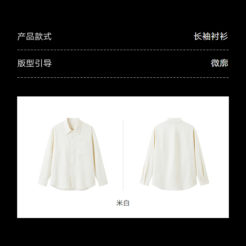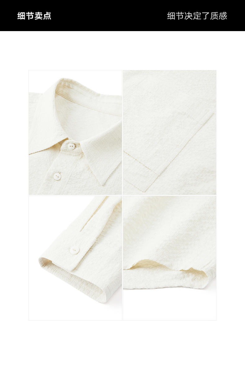 gxg.jeans男装 米白泡泡纱肌理简约休闲长袖衬衫外套男 25夏热卖