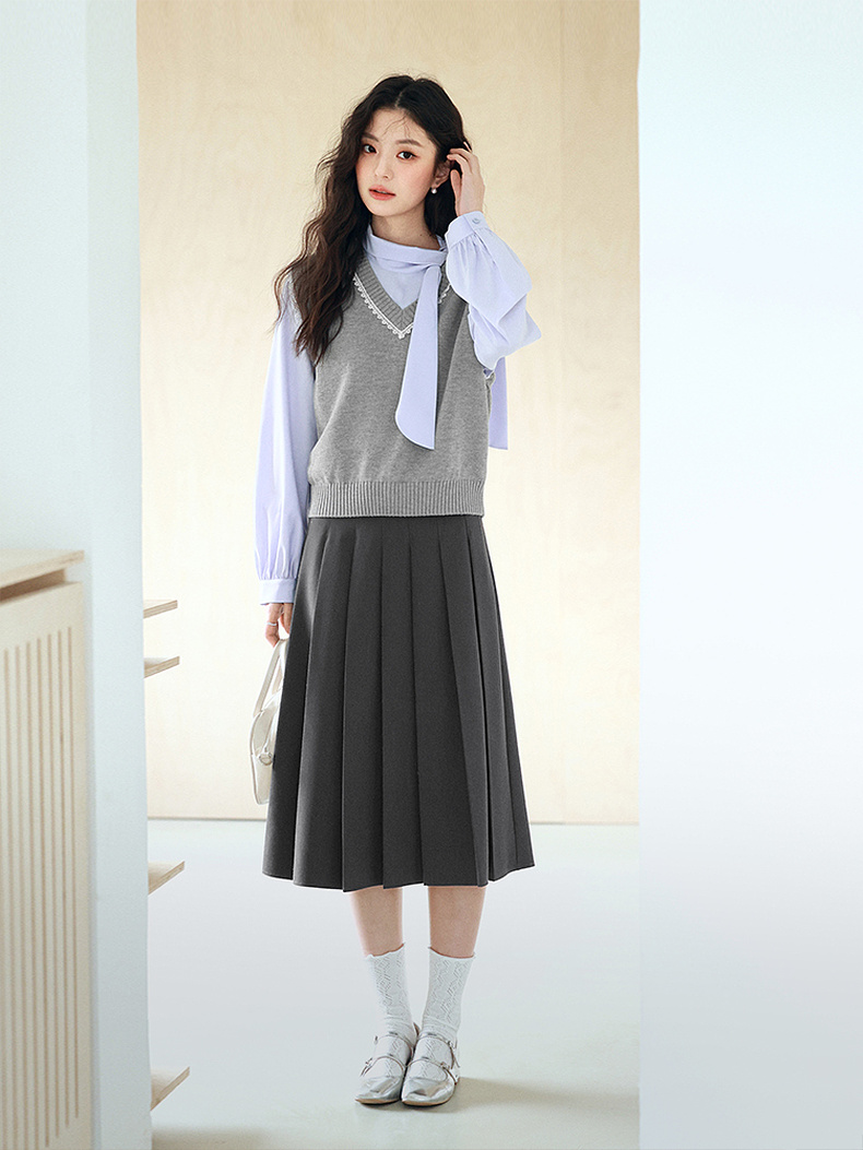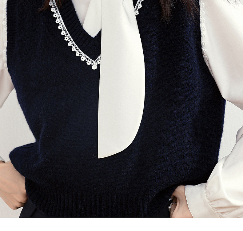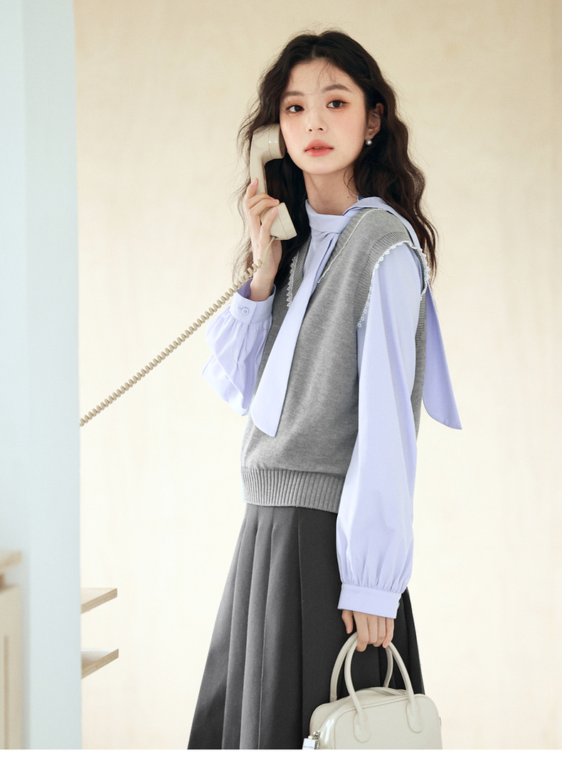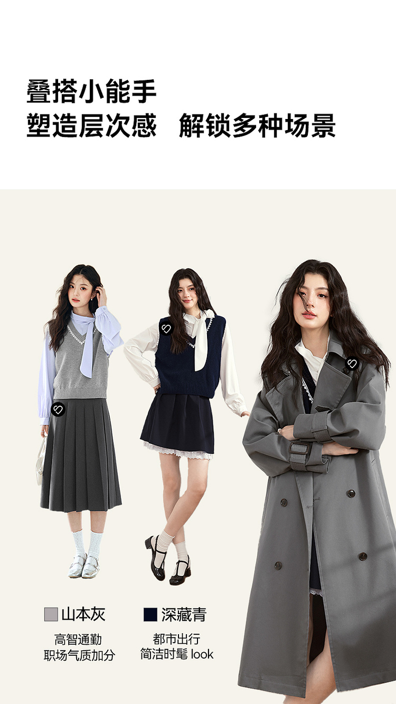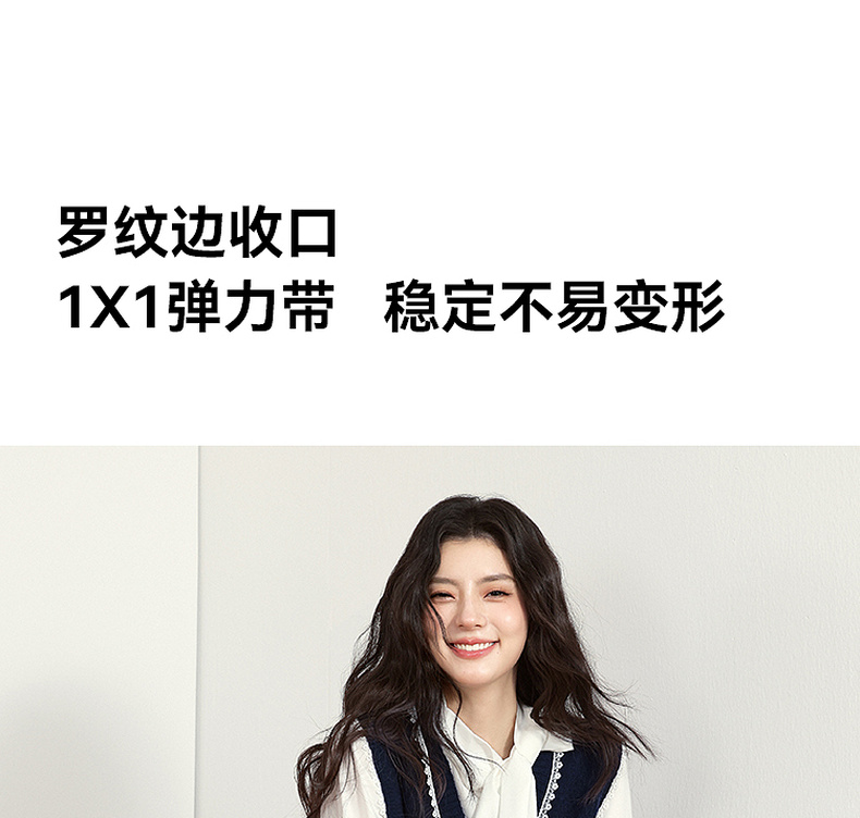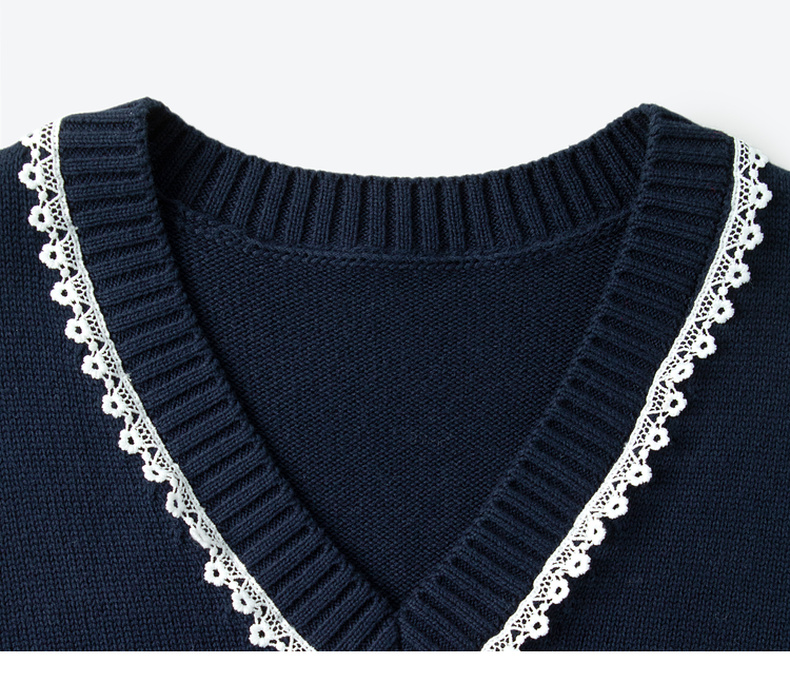 【严选】诗凡黎100%棉V领花边拼接针织马甲25春新品灰色百搭叠穿上衣7G1130681
